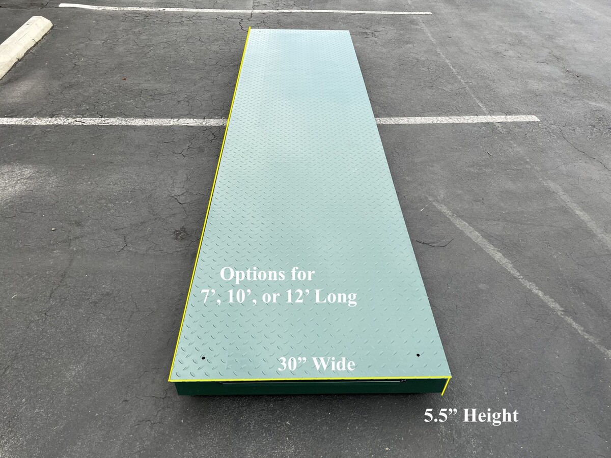 USA Measurements "GREEN DRAGON" US-AX730-60K series truck scale. System includes dual weigh bridge (2 pads), digital LCD display, (4) ramps, and steel braided cables. This system can be used to weigh cars, trucks, pick-ups, roll offs, dumpster trucks, tractor trailers, and many other types of vehicles. The user will drive each axle on the scale and the US-M5 stainless steel indicator can offer an accumulated weights and print outs. Great for portable applications, outdoor use, placed in permanent yards, and many other uses. The US-AX730-60K series is perfect to avoid DOT fines.Features: Avoid overweight fines, DOT fines, and ensure underloadingAvailable in 7' long, 30" wide, and 5.75" height platformCapacity: 60,000 lb x 10 lbLarge weighing surface and low profile for vehicle weighingHeavy duty I-Beam construction with threaded top plateFour premium water tight alloy steel nickel plated load cellsLow profile 5.75? height for smooth drive on/offLoad cell capacity is 2.2 times the scale capacity for overload protection50? quick connecting cables (2) for hostile environmentsCan be used with ramps for above ground installationsCan be used for flush installation for permanent applicationDurable platform with treading for tire gripPowder coated green paint finishAccuracy: 2-5% of given weightForklift portableFactory CalibratedOverload Protection5 Year Warranty on Steel Deck2 Year Warranty on ElectronicsNon-NTEP (Not legal for trade) US-M5 Indicator Features:Great for use with axle scales, wheel weigher, and multiple scalesGross weight, batches, accumulation, and moreIncludes Hard Shell Pelican CaseLarge Digital LCD display (size: 5.3in x 1.4in)Tare, Zero, Print, Save, Check, and Delete functionsWeighing units: Lb or KgBuilt in Thermal PrinterMany different printing formatsIncludes rechargeable battery (6v/4.5Ah)100 Hour Battery LifeRS-232 port for scoreboard displayConnects up to 4 weighing itemsDisplay shows individual weight, gross weight, and percent weightOptions for Automatic printing modesProgramming for date and timeRS-232 for connection with PC or SoftwareSplash proof keyboard and display2 Year Manufacturer Warranty What is include: (2) 7' x 30" Twin Weigh Bridge(4) 25" x 30" Ramps with Mounting(8) 20,000 lb NTEP Load Cells(8) Adjustable Leveling Feet(2) 50' Stainless steel Braided Cables(1) US-M5 Steel Steel Indicator with Printer(2) 110V Power Adapter(1) User Manual Common Applications: Military UseRecycling (Non-NTEP applications)Trucking CompaniesRemote Job SitesLogging Lumber BusinessTemporary Job Site / Clean UpsWeighing Forklifts / Bobcat / Skid Steer Resources: Green Dragon BrochureUS-M5 ManualAxle Scale blueprintInstallation instruction for axle scale WHY CHOOSE USA MEASUREMENTS? We offer a quality built product at a reasonable price. We specialize in scales and nothing else. We offer sales, service, and calibration in the largest cities throughout the United States. We stand behind our products with a 5 year warranty, 30 day return policy, and have a knowledgeable staff ready to answer any questions. We manufacture American made products, build custom scales, and offer only the best quality. Call us now: 800-711-2237