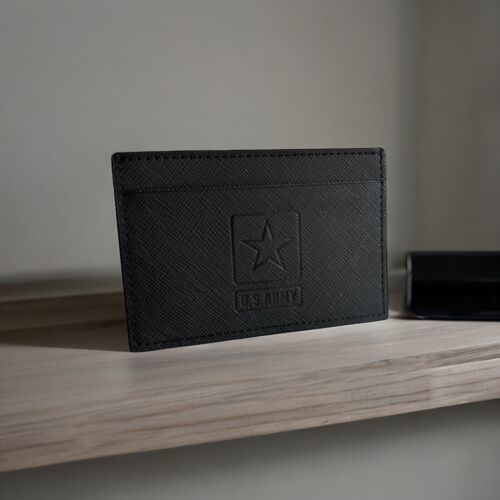 This US Army Logo Leather Wallet in black is the perfect accessory for any army veteran or enthusiast. Made with faux leather material and featuring the iconic army logo, this mini wallet is both stylish and practical. Measuring at 4 3/8 inches in length and 3 inches in width, it is the perfect size to carry all your credit cards.