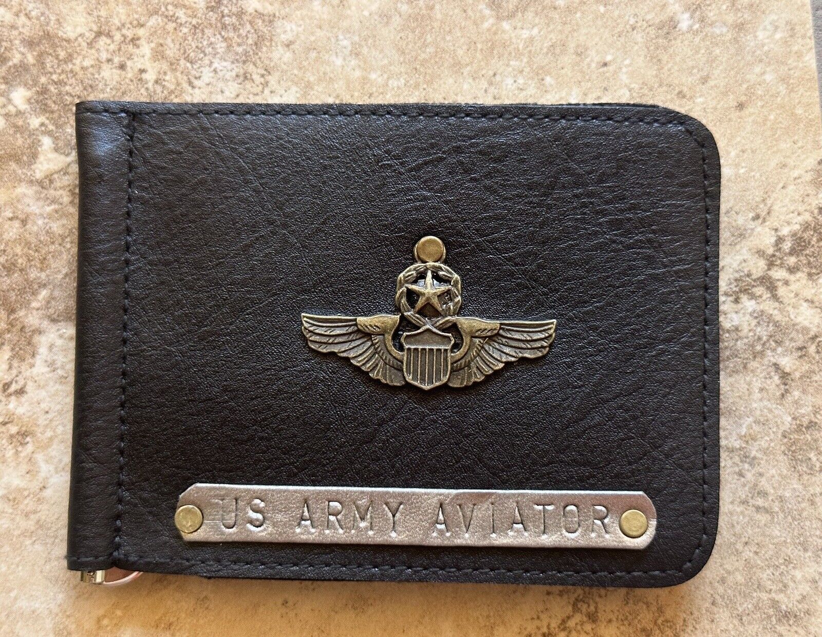 This US Army Aviator Wallet is a must-have for any man looking to add a touch of style and patriotism to their daily routine. The sleek design is perfect for keeping your essentials organized, with enough space to hold all of your cards and cash. The wallet comes in a classic black color, making it easy to match with any outfit.