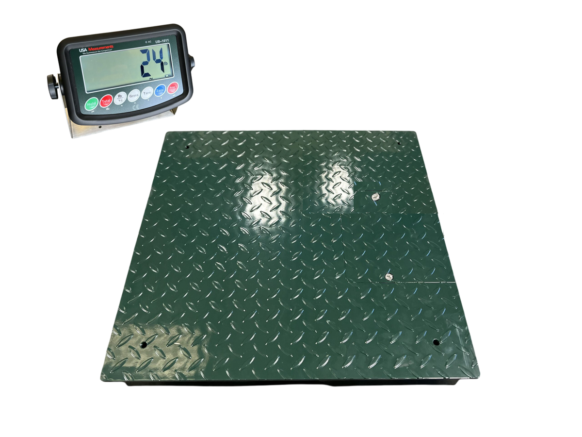 The Etek floor scale features a durable diamond-plated steel platform with six-channel steel reinforcement for enhanced strength. It includes two ramps for easy loading and unloading. The scale's four shear beam load cells are designed to endure shocks, equipped with ball swivel feet to minimize vibration, and provide 200% overload protection. Each scale comes with a 5-year manufacturer warranty, is factory calibrated for precision, and includes an 18-foot steel braided cable along with an LCD digital readout. The US-1011 indicator supports up to four 350-ohm load cells and features a built-in LCD display and a rechargeable battery with an impressive 80-hour runtime. This user-friendly indicator offers all the essential functions for seamless operation. Platform Features:40"x40" Platform Size1,000 lb Max Capacity0.1 lb ReadabilitySolid 1/5? thick steel deckFour 350 Ohm Load Cells200% Overload ProtectionLCD Digital Indicator20? Steel Braided CableRechargeable BatteryBall Swivel FeetLow Profile 3.5? Height110V AC Adapter IncludedFactory Calibrated for AccuracyNon-NTEP (Not legal for trade) US-1011 Indicator Features:LCD Backlight Display1.2? Digit SizeNet, Total, Hold, Zero, AccumulationUnits: Lb, Kg, % weightCounting FunctionRechargeable Battery110V Power AdapterAnimal Scale FunctionCheck weigh (Hi/Ok/Lo)RS-232 OutputPowers (4) 350 ohm Load CellsDimensions: 9.5?x4.9?x2.5?Operating Temp: -10C to 40C (14F to 104F) What it includes: (1) 40"x40" Platform Scale(2) 40"x40" Ramps(1) US-1011 Digital LCD Indicator(1) 20' Steel Braided Cable(4) Leveling Feet(1) Built in Rechargeable Battery(1) AC Power Adapter(1) 15? Home Run Cable(1) Stainless Steel Mounting Bracket(1) Owner?s Manual Common Applications: Weighing pallets for shipping and logisticsMonitoring inventory in warehousesMeasuring incoming and outgoing goodsEnsuring compliance with weight regulationsBulk material weighing in manufacturingAgricultural produce and livestock feed weighingFreight and cargo managementQuality control and production line checksRetail and distribution center operations Resources: Etek BrochureUS-1011 BrochureUS-1011 Owners Manual WHY CHOOSE USA MEASUREMENTS? We offer a quality built product at a reasonable price. We specialize in scales and nothing else. We offer sales, service, and calibration in the largest cities throughout the United States. We stand behind our products with a 5 year warranty, 30 day return policy, and have a knowledgeable staff ready to answer any questions. We manufacture American made products, build custom scales, and offer only the best quality. Call us now: 833-286-7135 https://youtu.be/CgNboM8k8G8?si=keZpe9a44ivmgFGrhttps://youtu.be/IKugGPeKtXA?si=0ZtJGtNsOneJoSoghttps://youtu.be/RAyOXORZPic?si=Z6qPcctJMarzHUFNhttps://youtu.be/6yS5LpLHI_0?si=KqDgcuhy2_DGIaYJhttps://youtu.be/MkPcHfarTmI?si=rHJCalPDyl896Lwi
