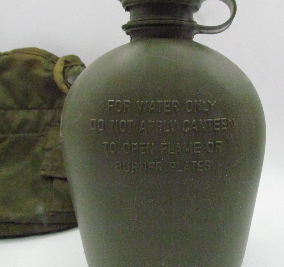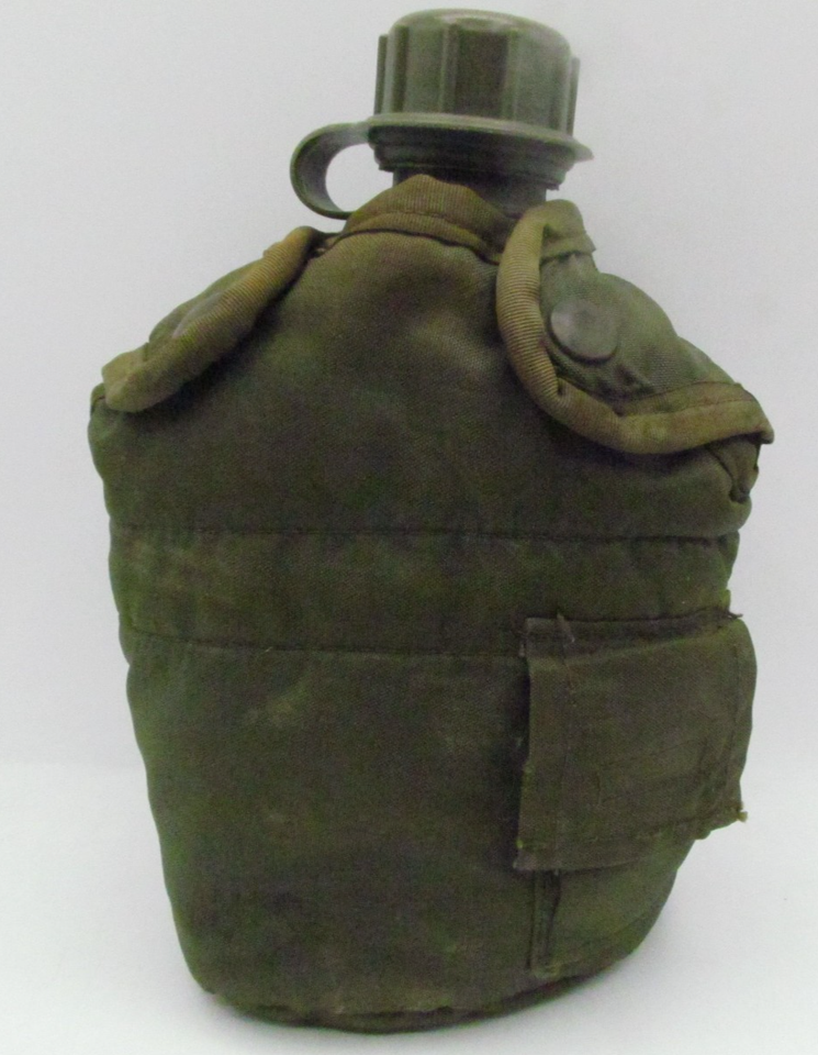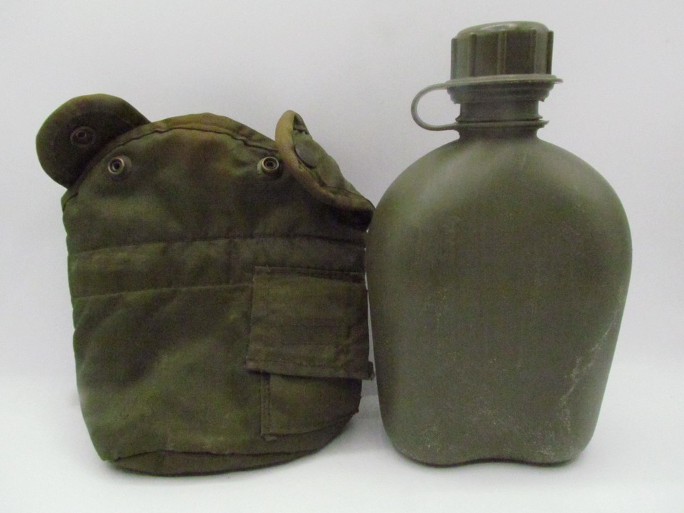 - US Military Green Nylon LC-2 Water Canteen & Cover Pouch with Belt Clips 1976