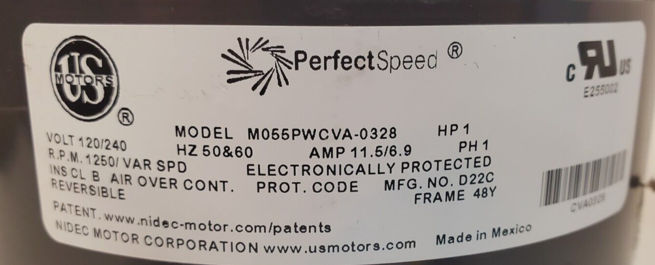 US Motors Furnace Blower Motor M055PWCVA-0328 | HP1 | 120/240V | 50&60Hz