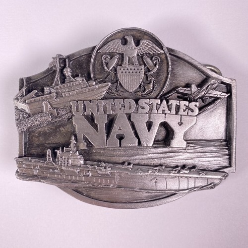 - US Navy Mens Military Commemorative Siskiyou Pewter Belt Buckle VTG 1987