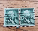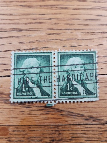 US Stamp George Washington 1c Used Green Strip of 2 "Hire the Handicapped"