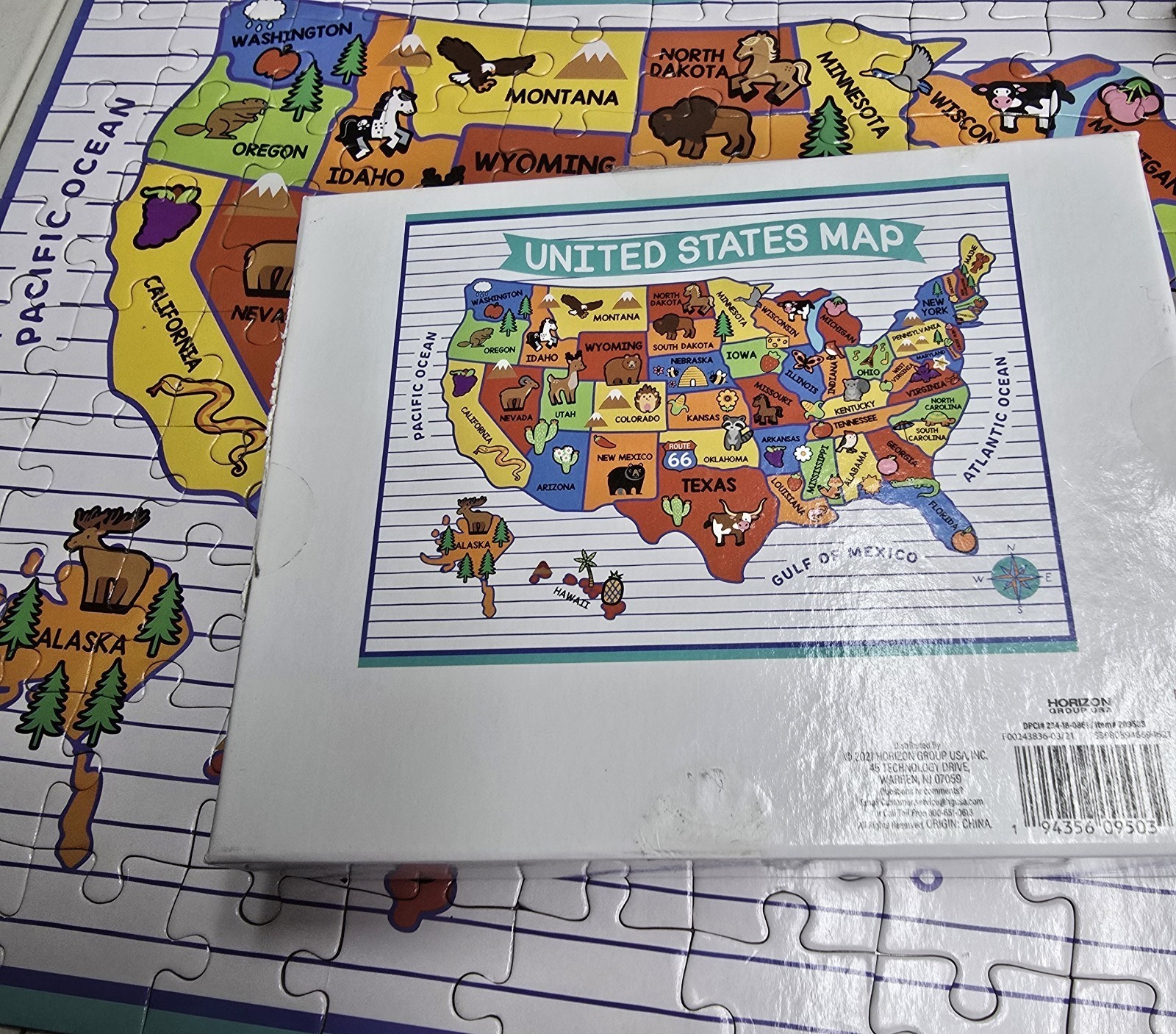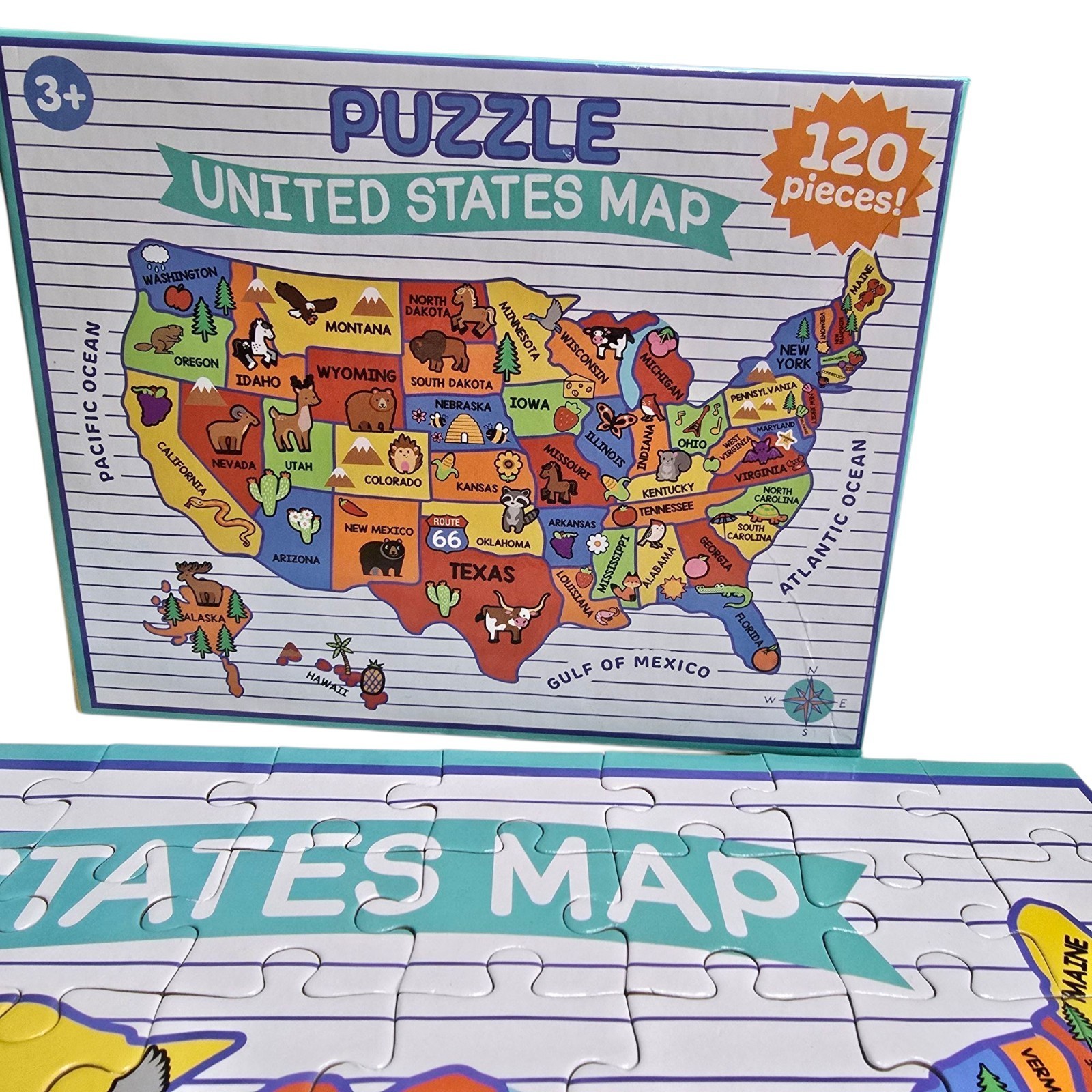 Introduce your child to U.S. geography with this colorful 120-piece USA Map Puzzle. Designed for kids ages 3 and up, it features each state with fun illustrations and landmarks to make learning fun. Perfect for early education, classroom activities, or family game time. Helps develop fine motor skills, memory, and spatial awareness. Ideal educational gift for preschoolers and young learners.