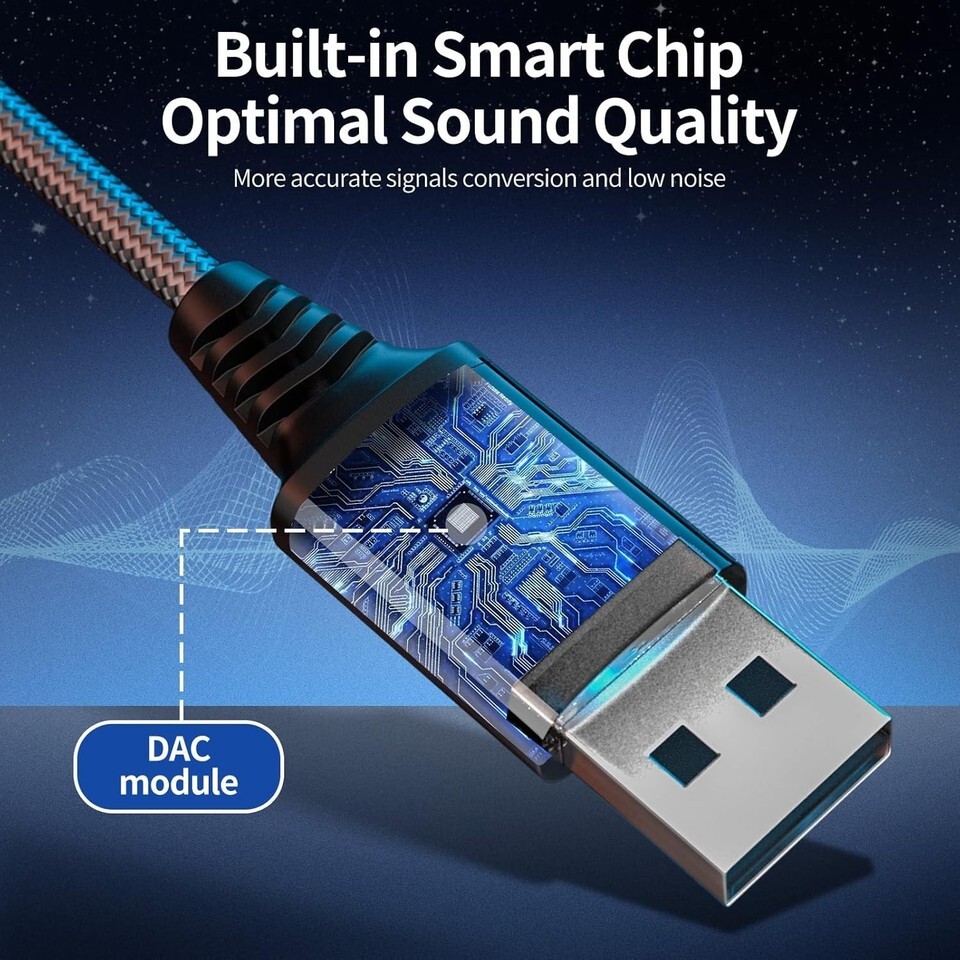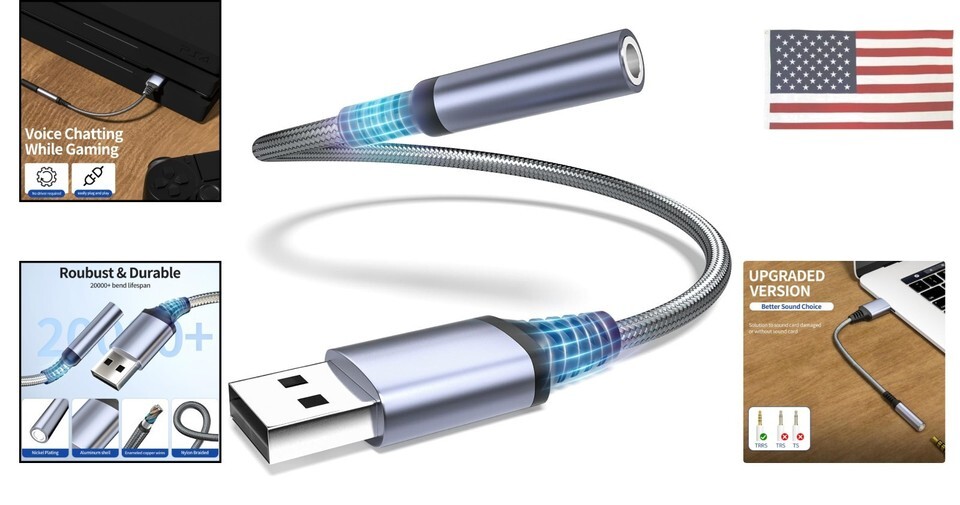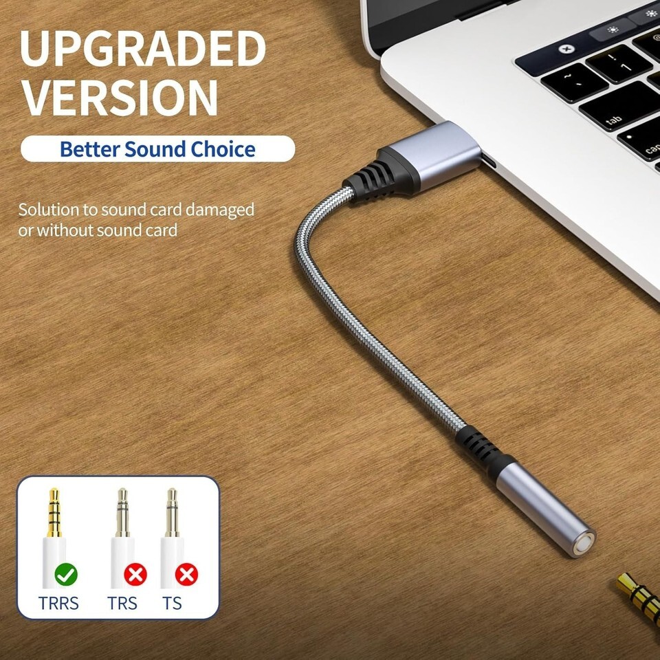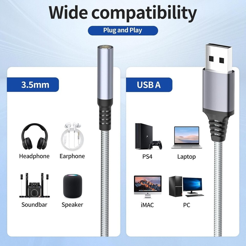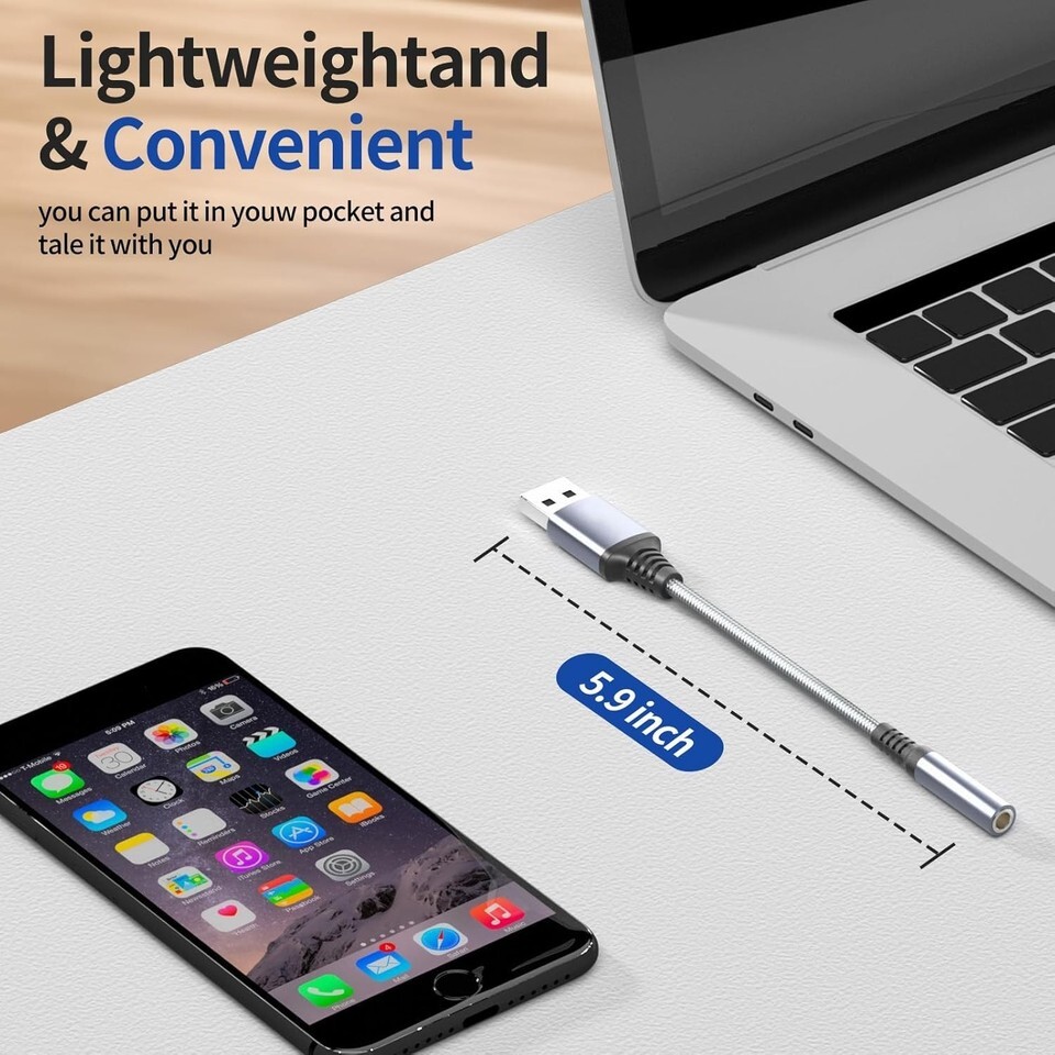 Compact and Portable: Crafted with an aluminum shell and a nylon braided cable, this USB to audio adapter is smaller and lighter than traditional plastic variants, ensuring durability and a longer lifespan.