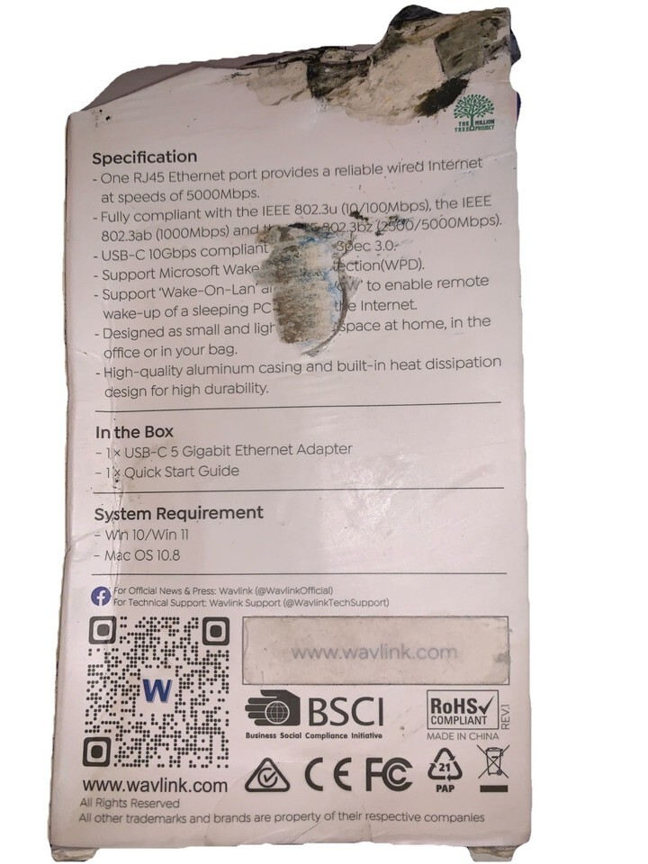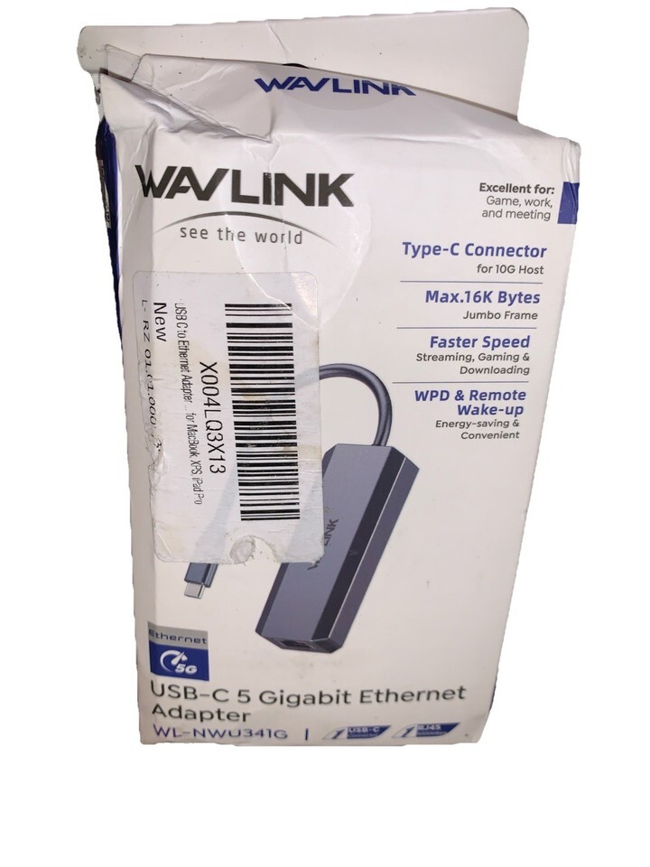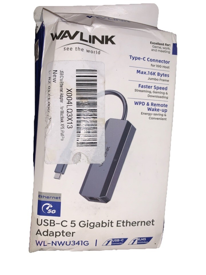 The USB-C 5 Gigabit Redefining RJ45 Ethernet Adapter by Wavlink is a versatile network adapter designed for various brands including Panasonic, Apple, Samsung, Microsoft, Sony, Dell, and more. This portable adapter in a sleek gray color offers fast Ethernet connectivity through its RJ-45 port. With a 1-year manufacturer warranty, this unit is reliable for expanding your device's network capabilities with ease.