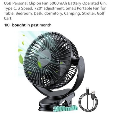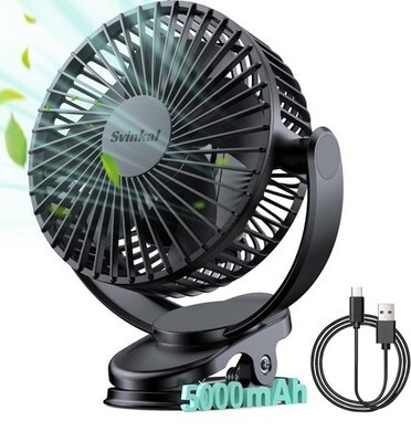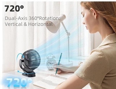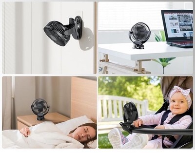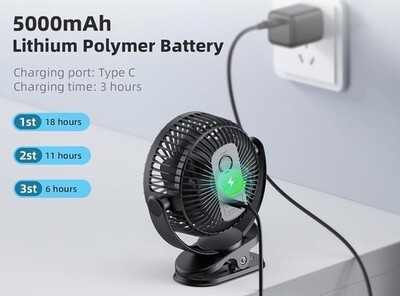 - USB Clip-On Fan 6 5000mAh Battery 3 Speed 720° Rotate Table Desk Camping
