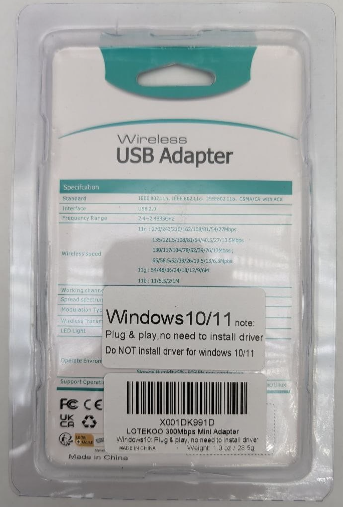 Item includes: Please note: This item includes 1x USB WiFi Adapter Nano 300Mbps Only ? As Pictured. No other accessories are included.