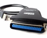 FOR SALE IS ONE (1) NEW USB male TO CENTRONICS 36 pin male PARALLEL PRINTER CONVERTER CABLE 30" length (30" = 2 1/2 feet). THIS UNIQUE CONVERTER CABLE ALLOWS YOU TO CONNECT YOUR OLDER PRINTER REQUIRING A CENTRONICS 36 pin PARALLEL CABLE TO ANY COMPUTER USB PORT (usb input). NEWER COMPUTERS RARELY HAVE A PARALLEL PORT THAT WAS USED YEARS AGO, THE DE FACTO STANDARD TO CONNECT A PRINTER TO A COMPUTER. VIEW THE PICTURES, ESPECIALLY PICTURE NUMBER TWO FOR APPLICATION OF THIS CABLE. THIS CABLE IS MALE to MALE. FEATURES A MALE USB ON ONE END TO PLUG INTO YOUR COMPUTER, AND MALE CENTRONICS 36 pin PARALLEL ON THE OTHER END TO PLUG INTO YOUR OLD SCHOOL PRINTER, LIKE MY HP DESK JET 932. BLACK color, FULLY MOLDED, 30" length, HOST TO HOST BIDIRECTIONAL COMMUNICATIONS (parallel) WITH THIS IEEE 1284 specification COMPLIANT CONVERTER ADAPTER CABLE. DELIVERS A VERY ADEQUATE MAXIMUM TRANSFER RATE OF 12 Mbps. NO NEED TO REPLACE YOUR OLDER AND VERY DEPENDABLE PRINTER, JUST USE THIS CONVERTER CABLE AND YOU ARE BACK IN BUSINESS, PLUG AND PLAY, NO SETUP, NO DRIVERS, JUST PLUG IT IN AND GO TO WORK. SUPPORTS VIRTUALLY ANY STANDARD OR IEEE 1284 PRINTER AND SOME OTHER DEVICES REQUIRING A CENTRONICS 36 pin PARALLEL CABLE. YOU WILL RECEIVE ONE (1) FACTORY FRESH 30" USB TO PARALLEL PRINTER CABLE SHIPPED BY USPS FIRST CLASS MAIL.....