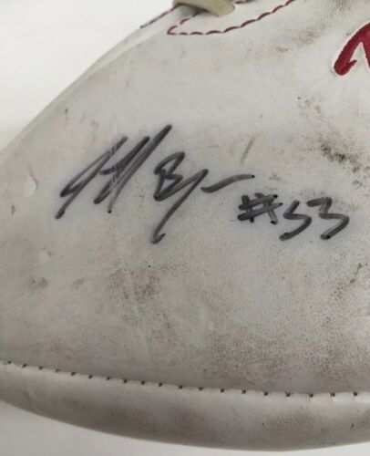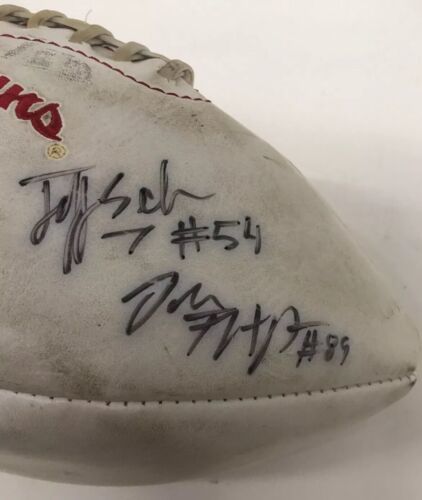 This football is used and signed by USC players Jeff Schweiger #54, Dale Thompson #89. Jeff Byers #53