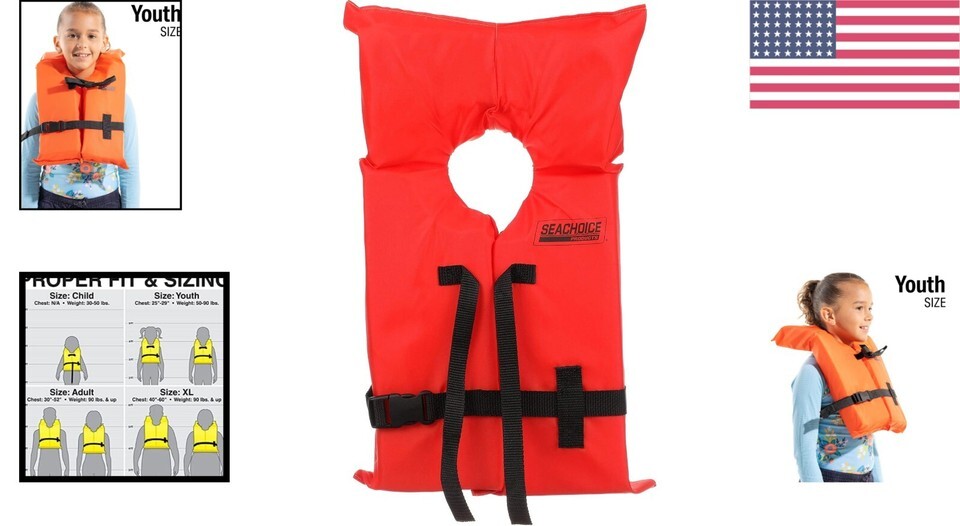 - USCG Approved Type II Youth Life Vest - Bright Orange, Lightweight, Adjustable