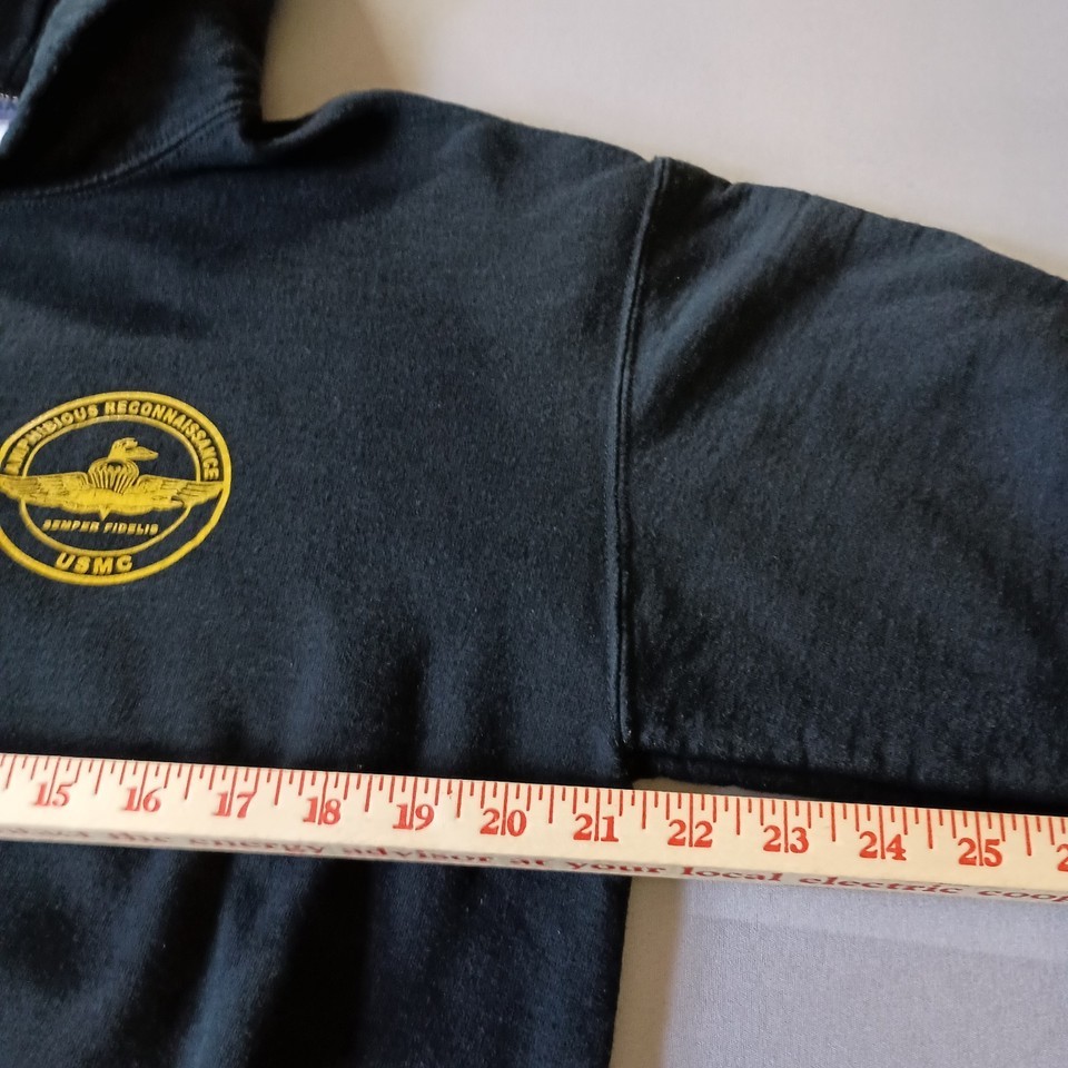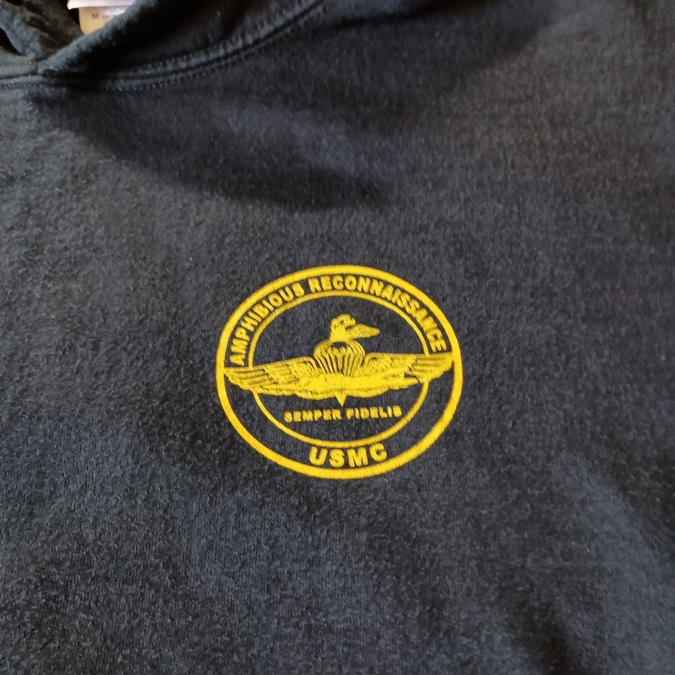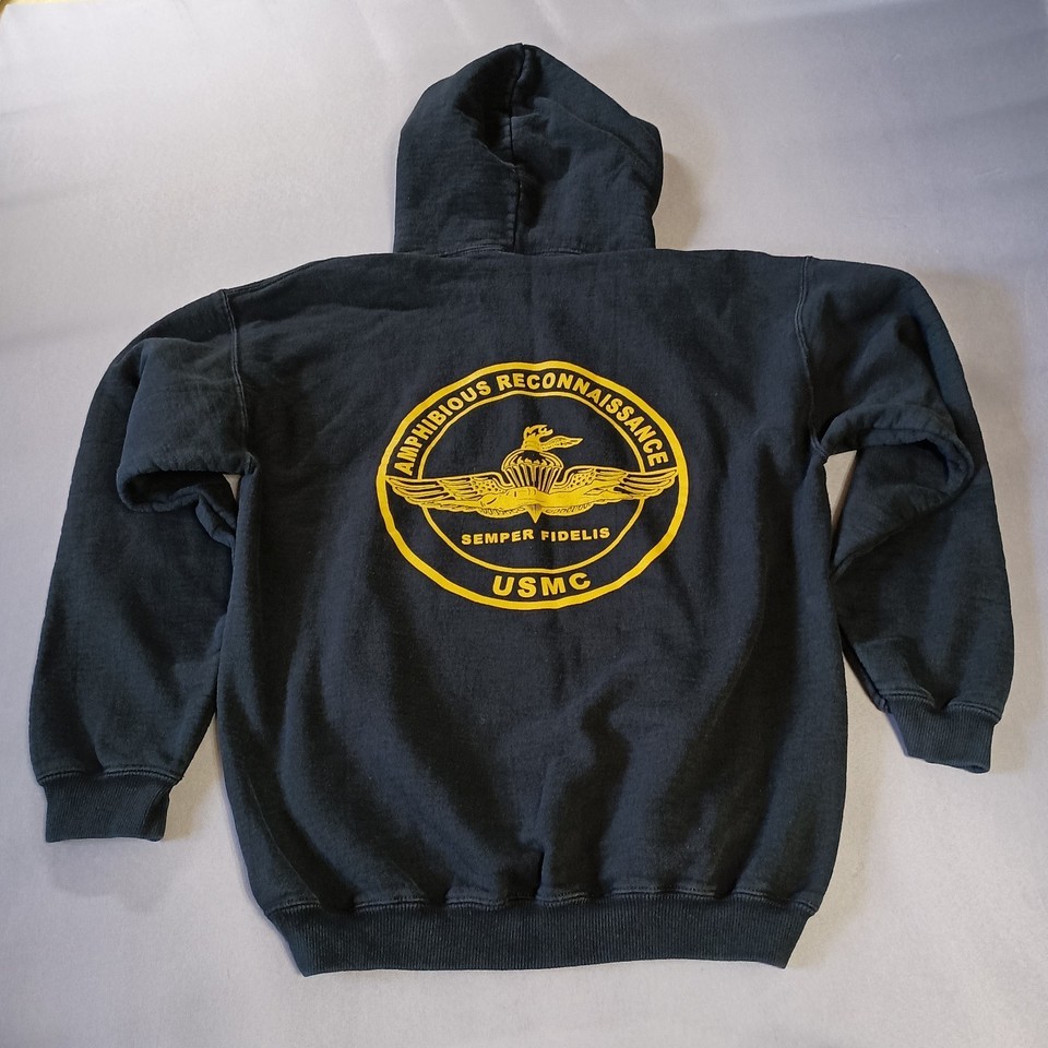- USMC Amphibious Reconnaissance Hoodie Sweatshirt Size M Black w/Yellow Print