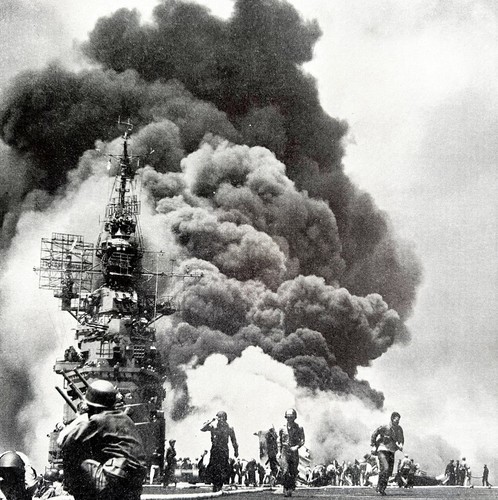 - USS Bunker Hill Hit By 2 Kamikaze Planes 1945 WW2 Photo Print Military DWHH10