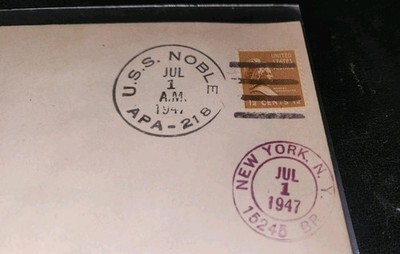 - USS Noble APA-218 1947 Envelope Cover Vintage