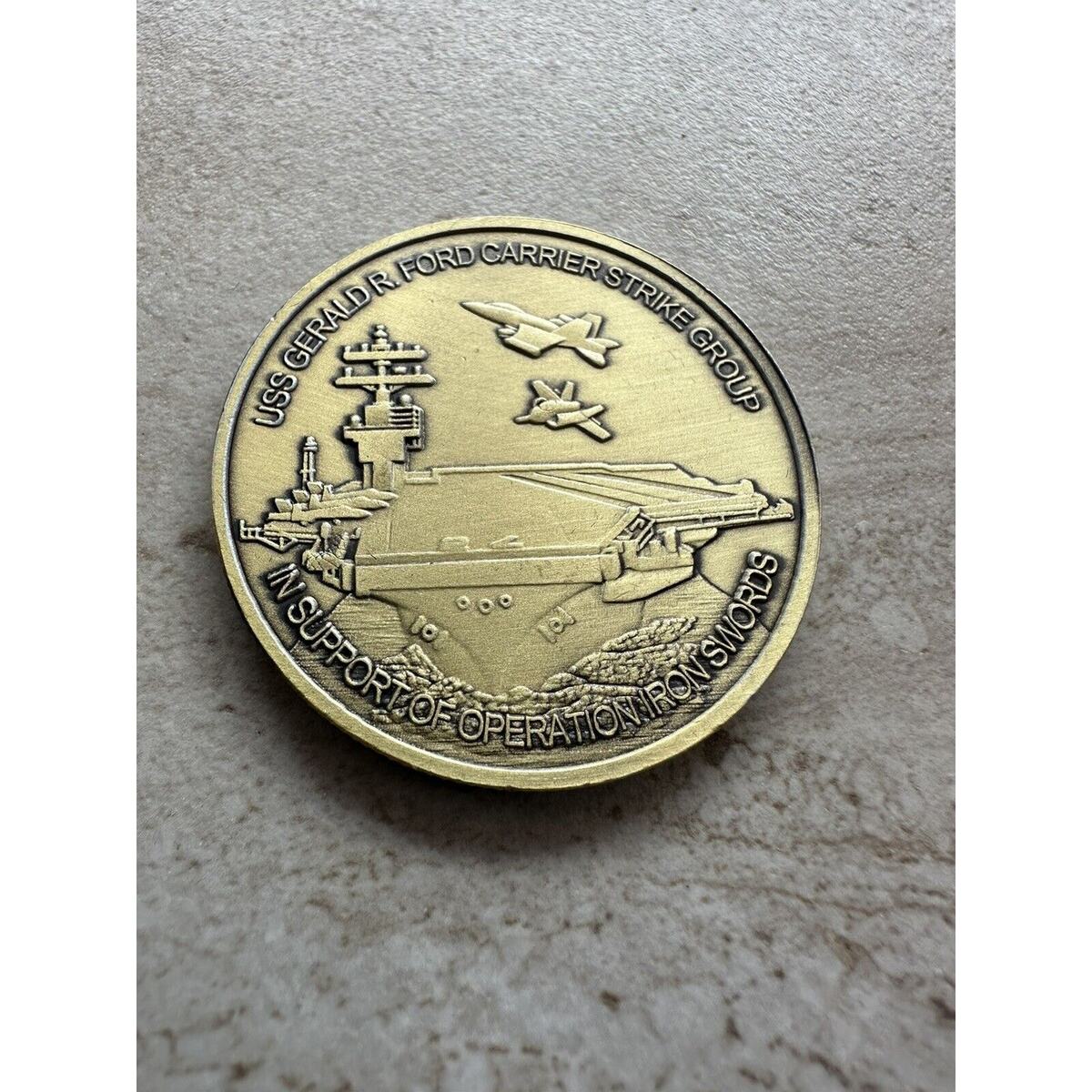 For sale is a unique Challenge Coin featuring the USS Gerald R. Ford CVN 78 in a Joint Secret Operation with CIA, Mossad, IDF and Israel. This original piece of militaria is a must-have for collectors and enthusiasts alike. The coin is made in the United States and is a perfect addition to any collection.