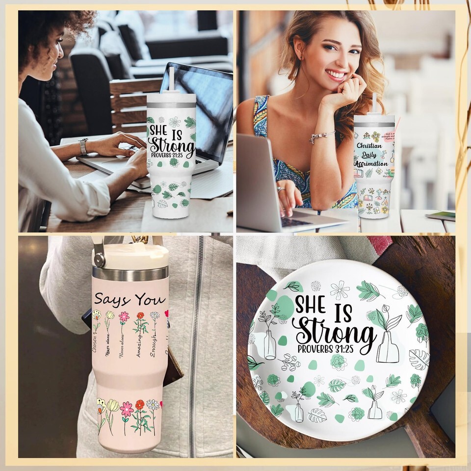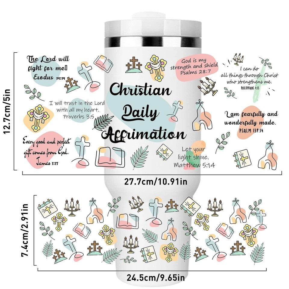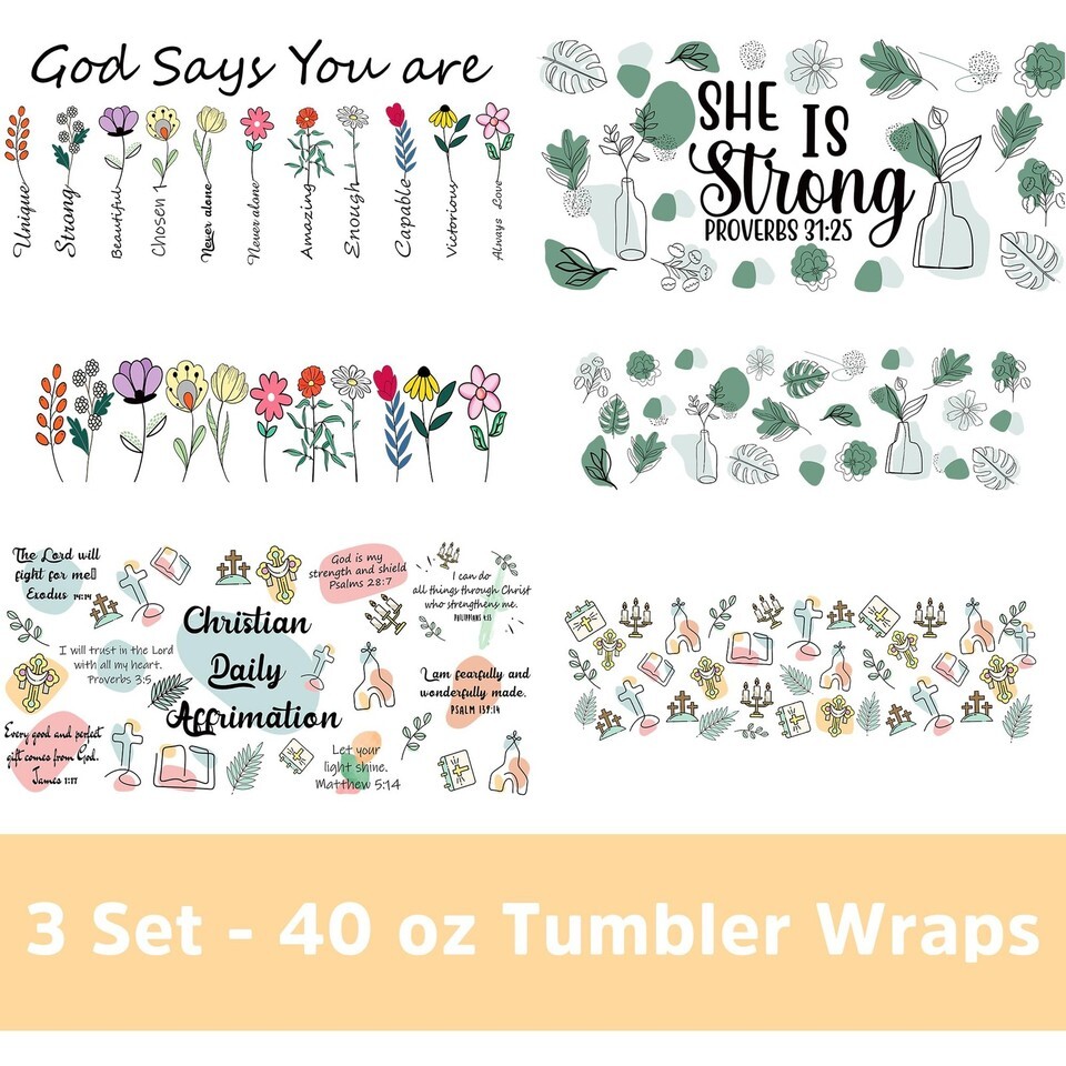 - UV DTF Cup Wrap Transfer 6 Sheets Bible Verse Floral Waterproof 40oz Tumbler