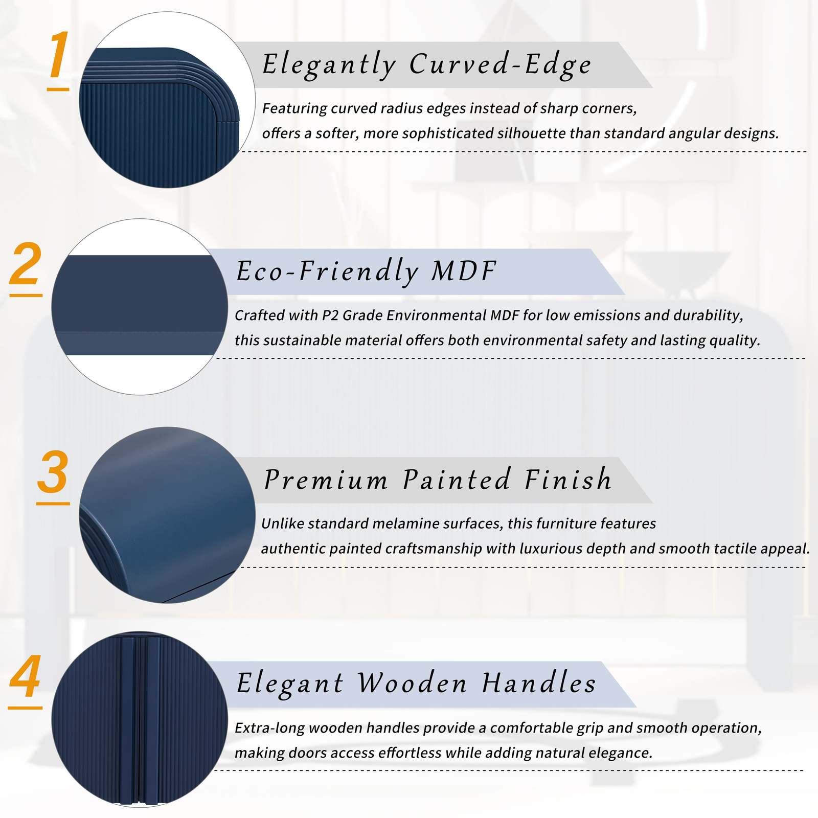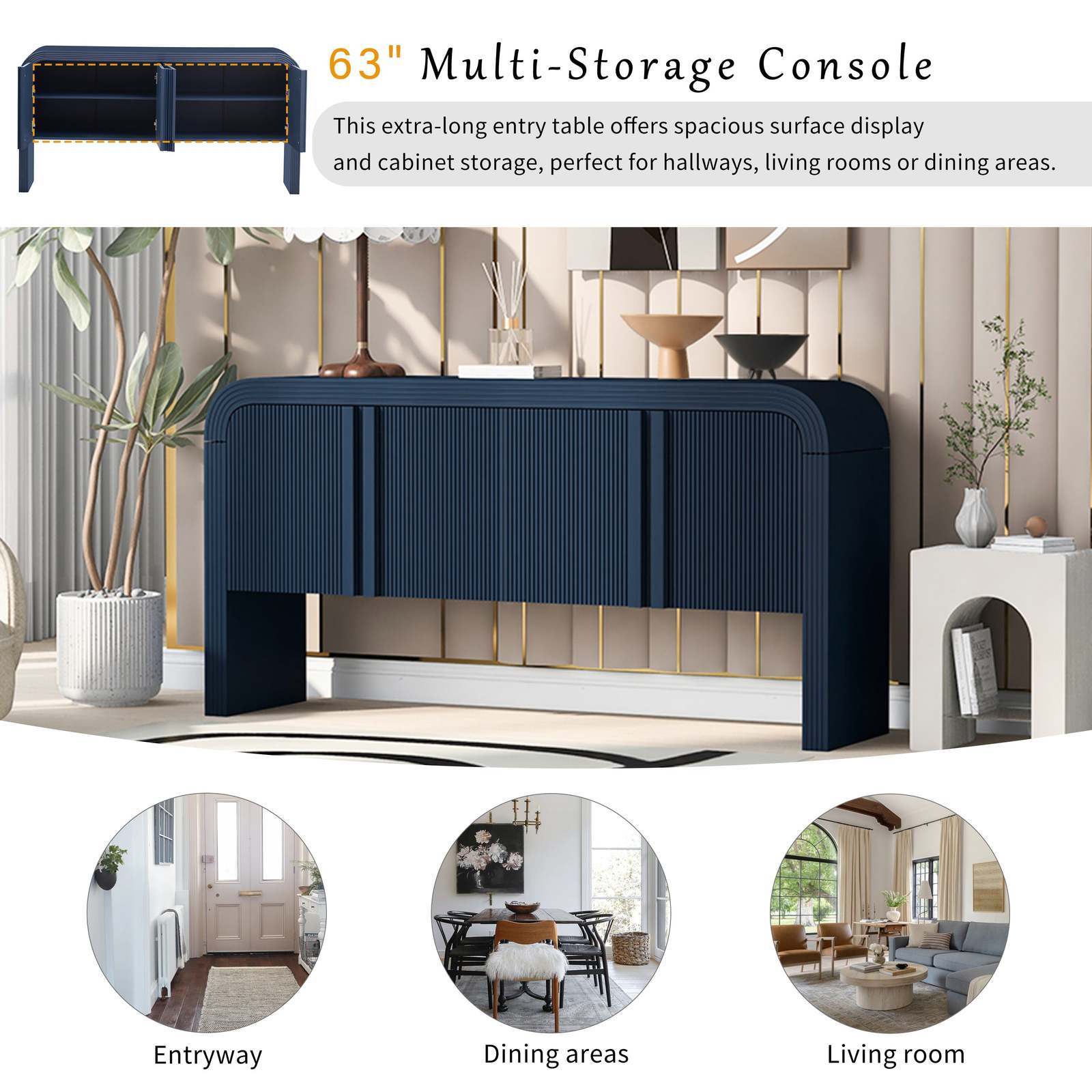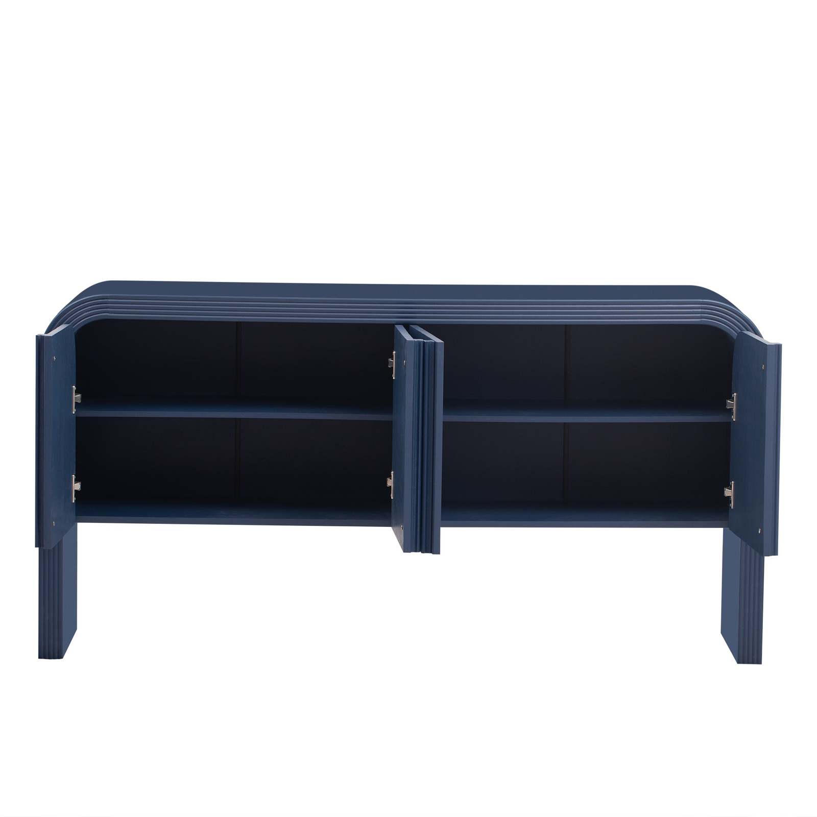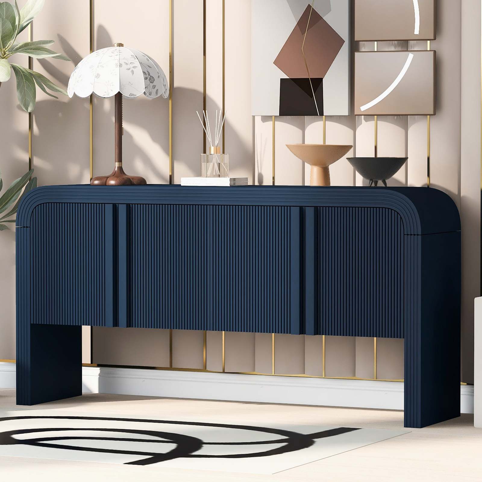 [4-Wavy Line Doors]:Sideboard features four doors, each with a vertical wave pattern that adds texture. The four-door design provides generous storage space, making it both functional and stylish for any entryway or living area.
