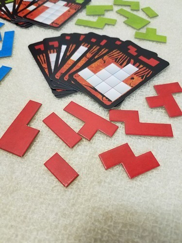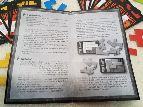 German geometric tile/card game Incomplete for Parts and/or Replacements Missing 4 puzzle pieces, 2 yellow, 1 blue and 1 green timer