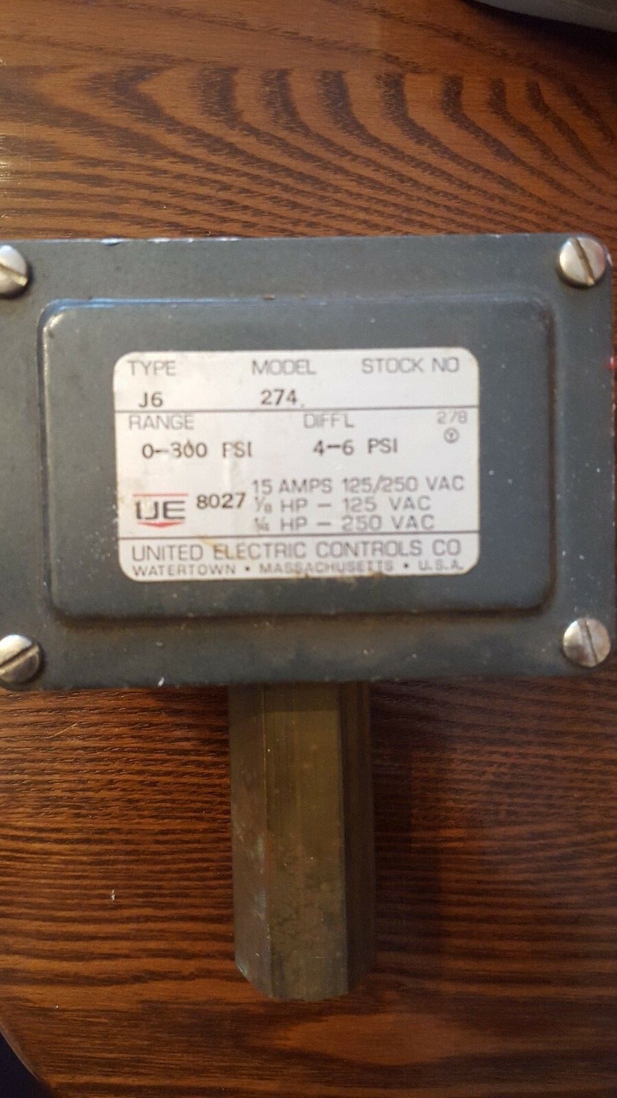 - Ue United Elettrico Pressostato Modello J6 Modello- 274 0-300 Psi 4- 6 Psi