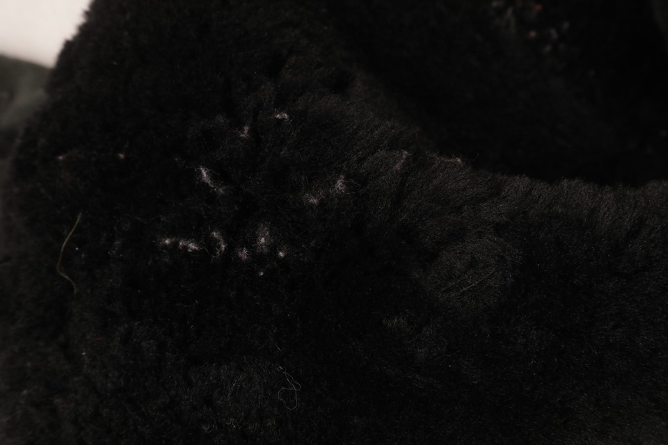 Good condition, lighter black color on both back suede heel area, worn heel area.