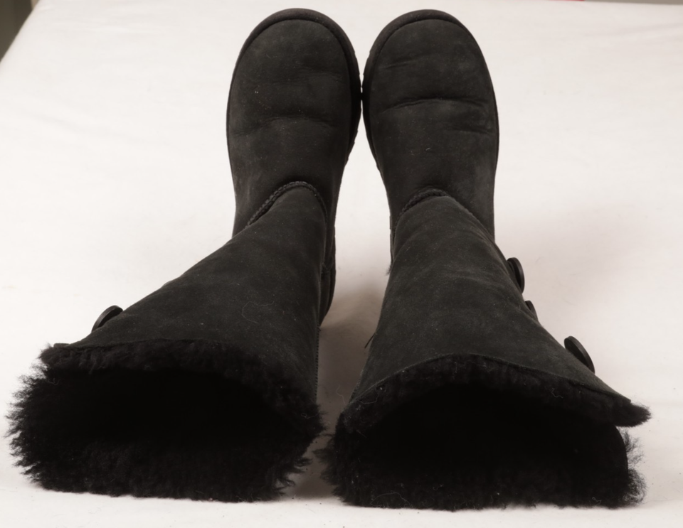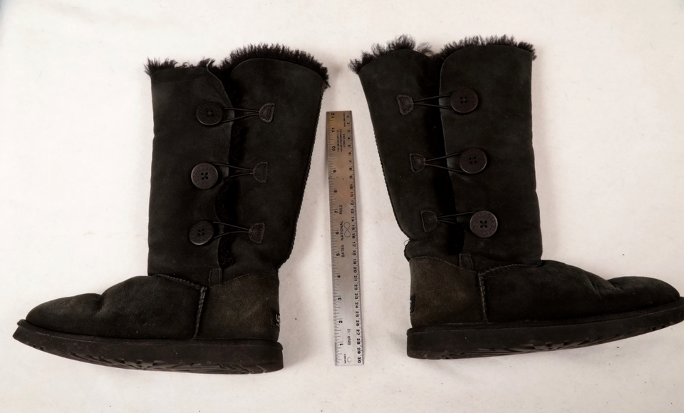 - UGG BAILEY BUTTON TRIPLET Suede & Sheepskin Black Tall Boots 1873 Women's Size 9