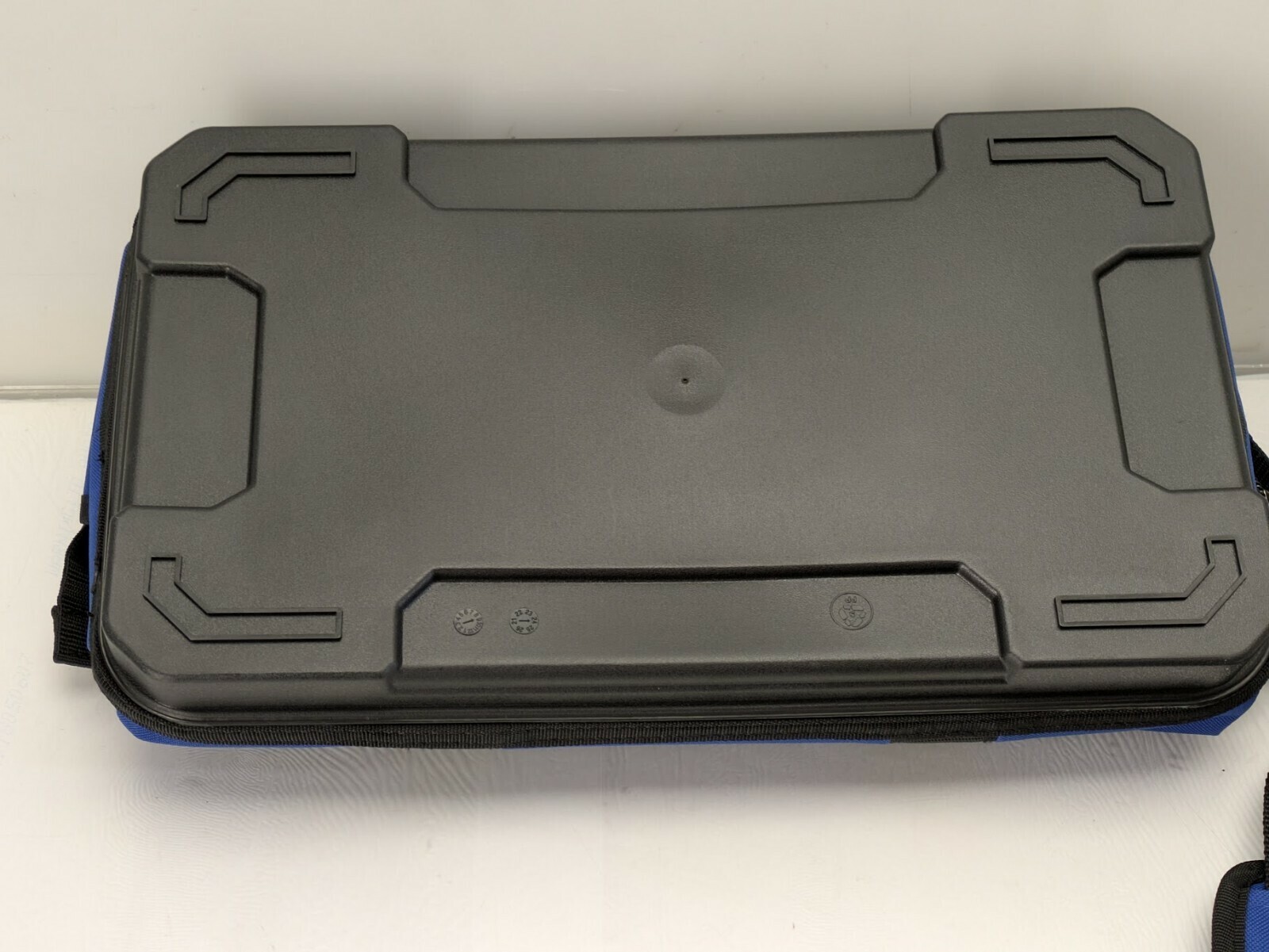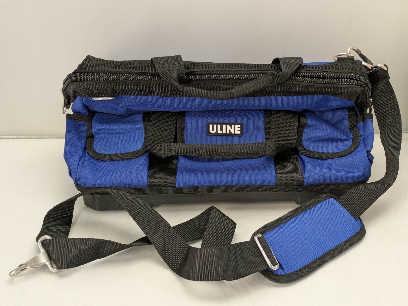 Uline Heavyweight Polyester Tool Bag Rigid Plastic Bottom Shoulder Strap Blue