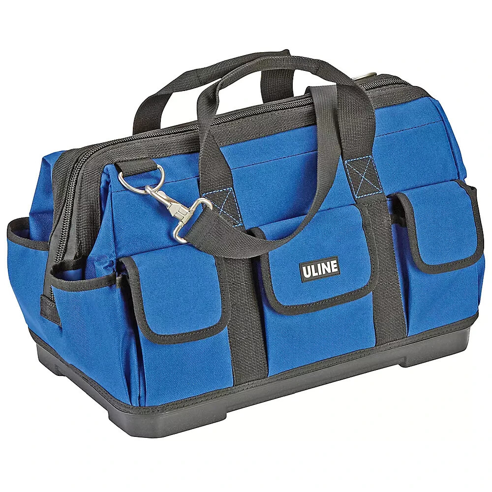- Uline Heavyweight Polyester Tool Bag Rigid Plastic Bottom Shoulder Strap Blue