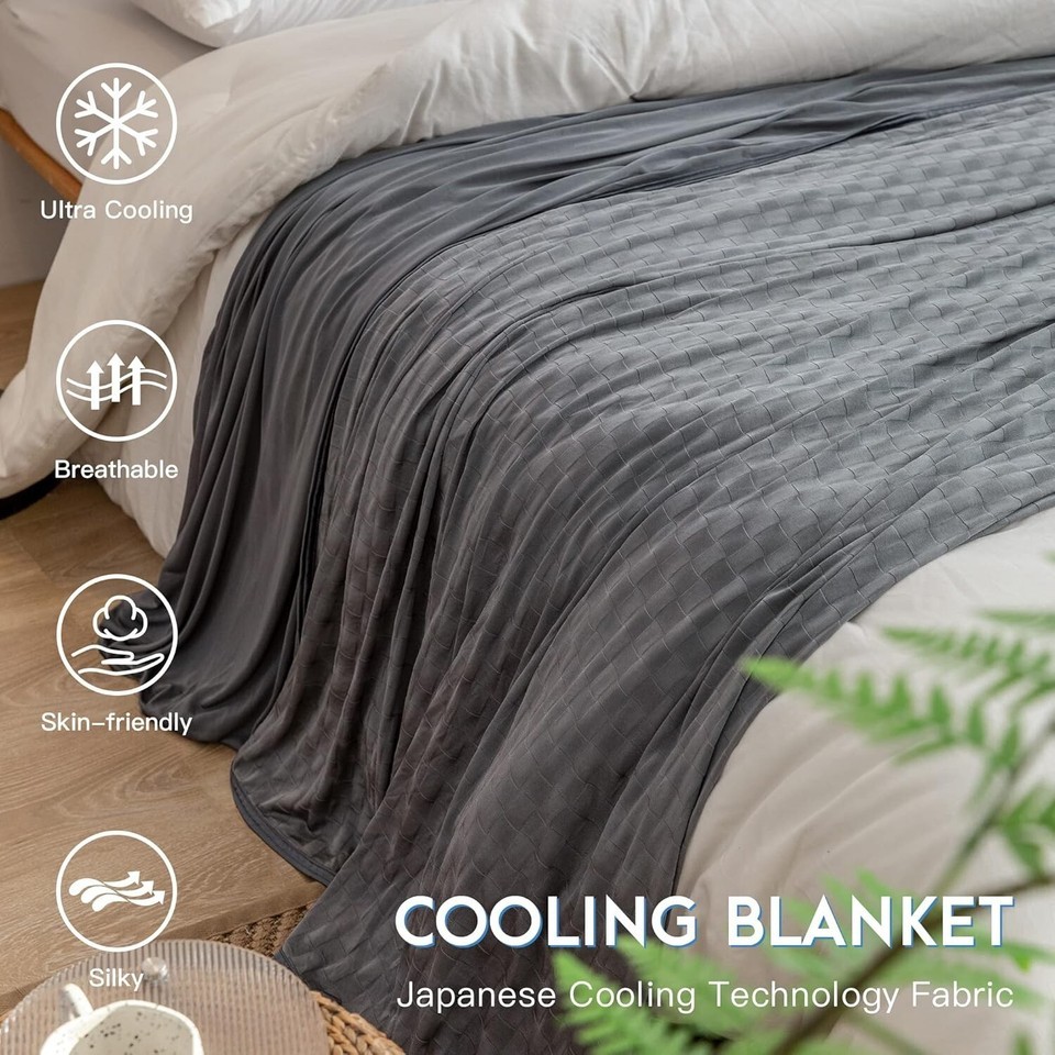 Experience ultimate comfort with the AmyHomie Cooling Blanket, crafted with cutting-edge Japanese Arc-Chill cooling technology on both sides, boasting a Q-max of over 0.5. Designed to swiftly absorb body heat, this lightweight, breathable blanket ensures you stay cool and cozy throughout hot summer nights. Its soft texture is gentle on sensitive skin, making it perfect for naps, snuggling on the couch, or travel. Versatile and easy to care for, it is machine washable and suitable for use on beds, in cars, or outdoors. Elegantly designed in a dark gray checkered pattern, it also makes a thoughtful gift for any occasion, including holidays and special celebrations. To ensure fast and reliable delivery, we work with multiple fulfillment partners and suppliers. Depending on availability and location, your order may ship from different warehouses or arrive in packaging that varies from item to item. Tracking details are typically provided shortly after shipment, and customer satisfaction remains our top priority. Please note that due to carrier policies and regional regulations, certain items may not be eligible for delivery to specific states or territories.