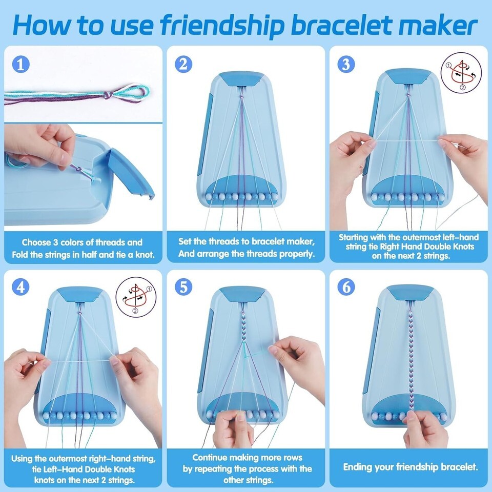 Unique and incredibly fun! This bracelet making kit allows you to craft your own bracelets using the friendship bracelet maker, complete with an array of rich accessories. Get creative with friends and design fantastic bracelets that you?ll cherish forever. Our innovative bracelet maker features a hidden storage compartment to neatly store all your threads.