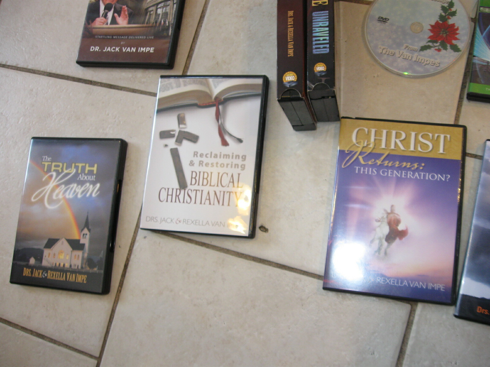 Ultimate LOT di 13 DVD VHS Jack Van Impe e Pat Robertson KJV Bible Audio CD Nota: uno dei VH non e qui. Conquista dei conflitti. L'ho dato via ... Ottieni 13 DVD (2 Pat Robertson e 11 Van Impe). Ottieni 3 VHS Tapes Van Impes Ottieni un CD biblico KJV E ottieni una guerra con il CD audio Russia Tutto in ottime condizioni !! Collezione di proprieta degli adulti. Dai un'occhiata ai miei altri DVD cristiani / furgonini !!!
