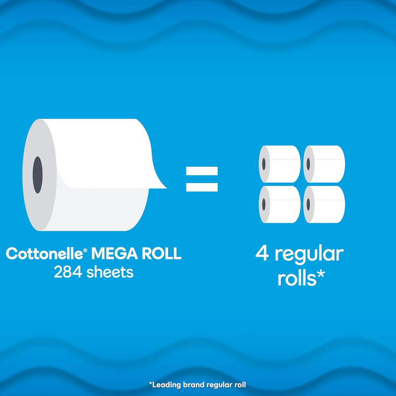 LASTS LONGER ? Cottonelle mega rolls last more than 5x longer than the leading brand's regular rolls so you?ll always have enough for you and your family