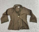 - Uluwatu Jacket Womens Large Brown Linen Rayon Handmade Balinese Lace Boho Lapel