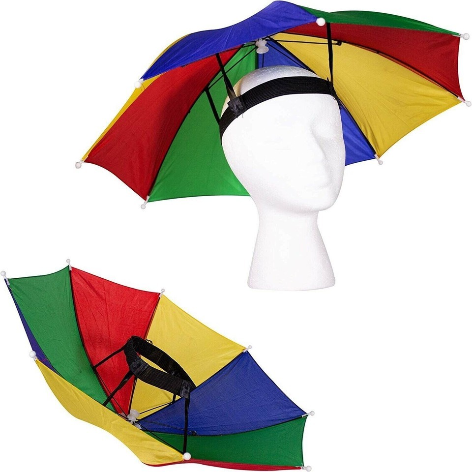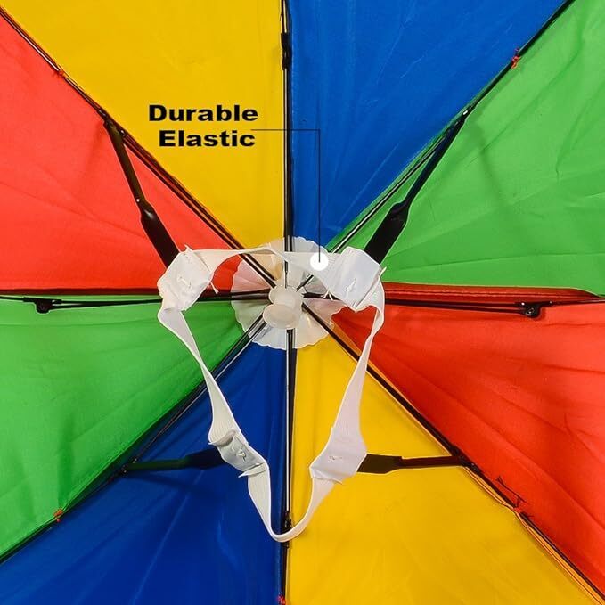 This Fun Umbrella Hat Folds Up Just Like an Umbrella for Easy Travel. There is an Adjustable Elastic Inside for All Head Sizes
