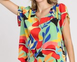 - Umgee Full Size Short Sleeved Abstract Print Top Plus Size