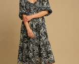 - Umgee Ruffle Hem Flower Printed V-Neck Dress