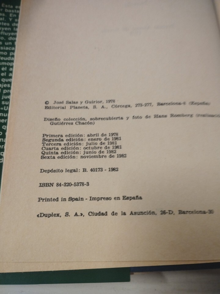 un viento que Pasa JOSE salas y Guirior Planeta 1982 - BOOK Spanish Am
