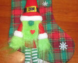 - Unbranded Grinch Gnome Christmas Stocking 17" Red Green Plaid Sparkly Hat