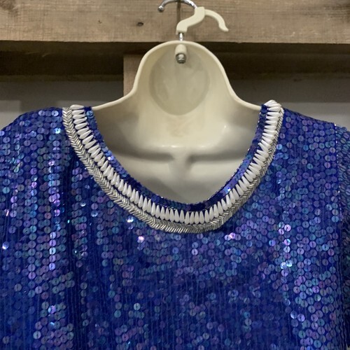 Excellent condition. Beautiful beadwork and sequins adorn this shirt complete with shoulder pads. 100% silk.