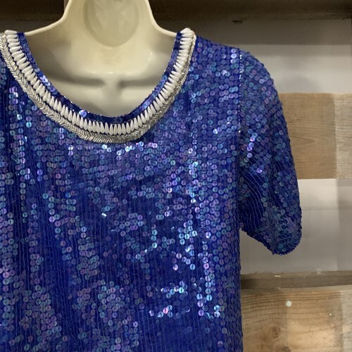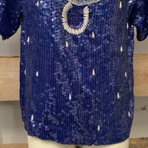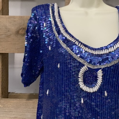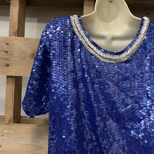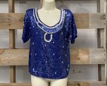 - Unbranded Silk Beaded Sequins Short Sleeve Blouse Top Womans Size M KG