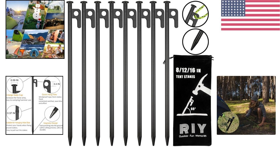 - Unbreakable 12-Inch Steel Tent Pegs - 8 Heavy-Duty Stakes for All Ground Types