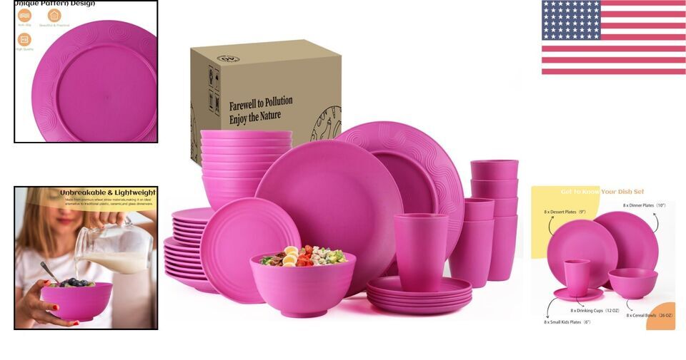 Experience effortless convenience and safety during mealtimes with our exquisite 40-piece dinnerware set, designed for style and durability. Crafted from 100% BPA-free and non-toxic wheat straw, this dinnerware set embodies the perfect blend of functionality and modern aesthetics.