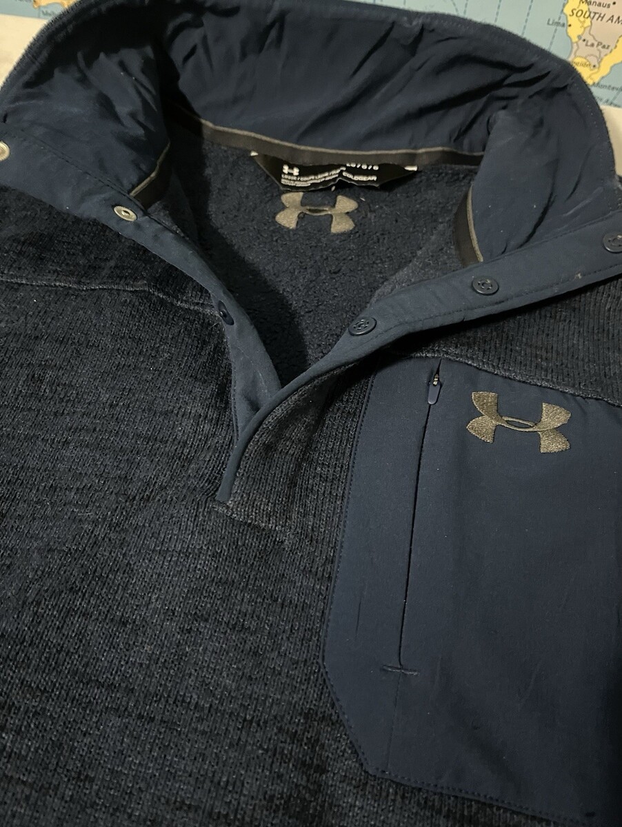 - Under Armour Mens Pullover Sweater Blue Embroidered Fleece 1/4 Snap Size Large