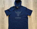 Under Armour Project Rock Men's L Short Sleeve Terry Hoodie Brahma Bull Blue EUC