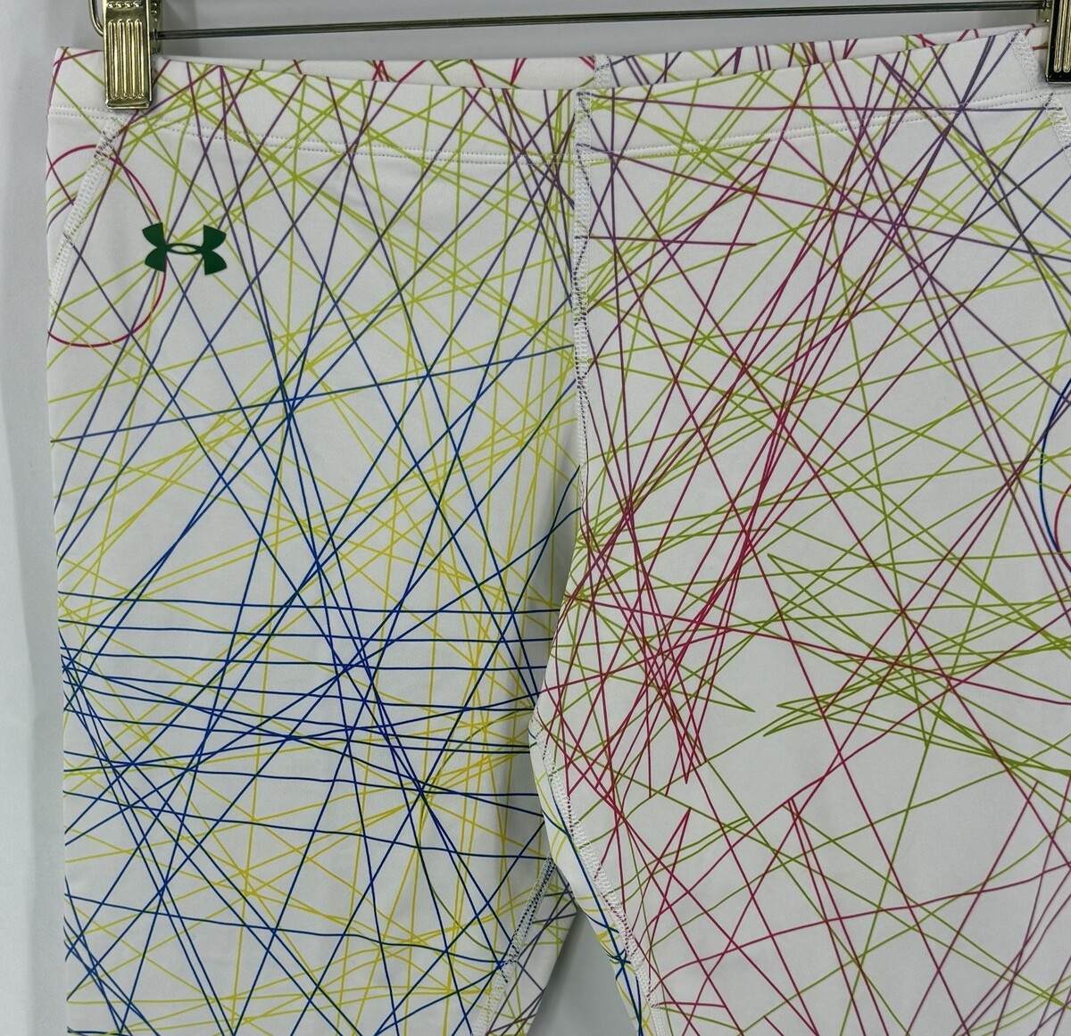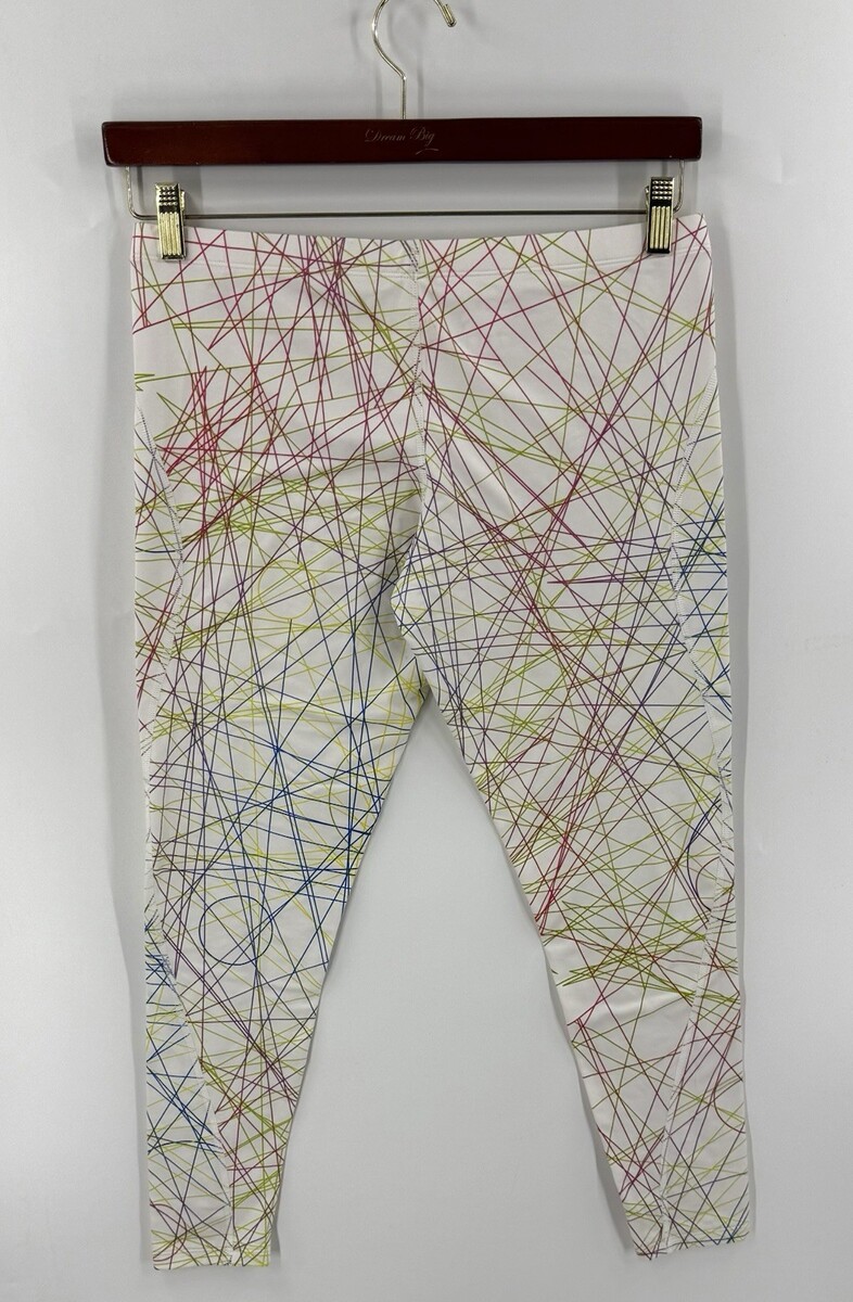 - Under armour Womens Leggings Sz Medium White Pink Green Colorful Abstract Lines