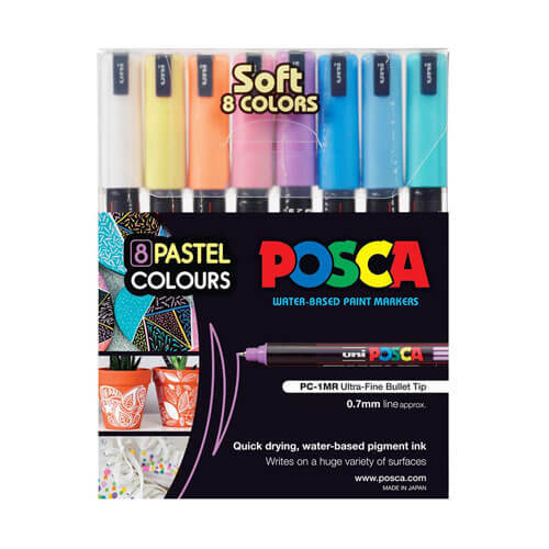 Paint Marker - Uni Posca - PC1MR N/point 0.7mm Pastel Colours - Wallet of 8 With its extra-fine calibrated tip ringed in metal, the POSCA PC-1MR has all the qualities of a paint marker - in the form of a pen!