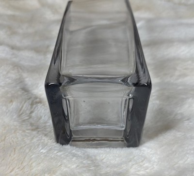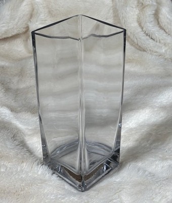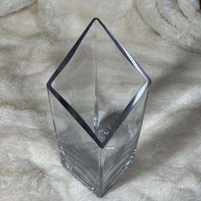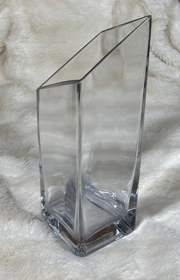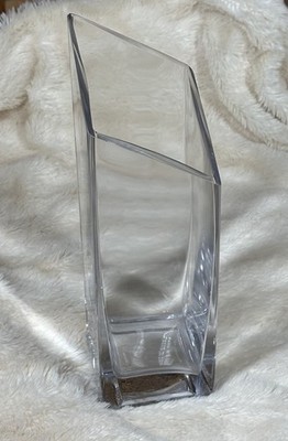 Unique Clear Thick Glass Vase Square Base Diagonal Cut Rim Geometic Contemporary Heavy