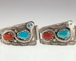 Sterling Silver Zuni Turquoise and Coral Watch Links