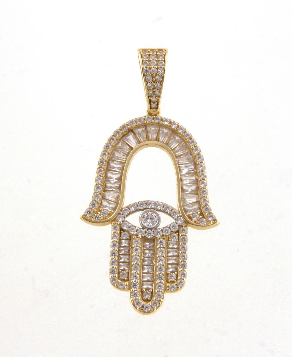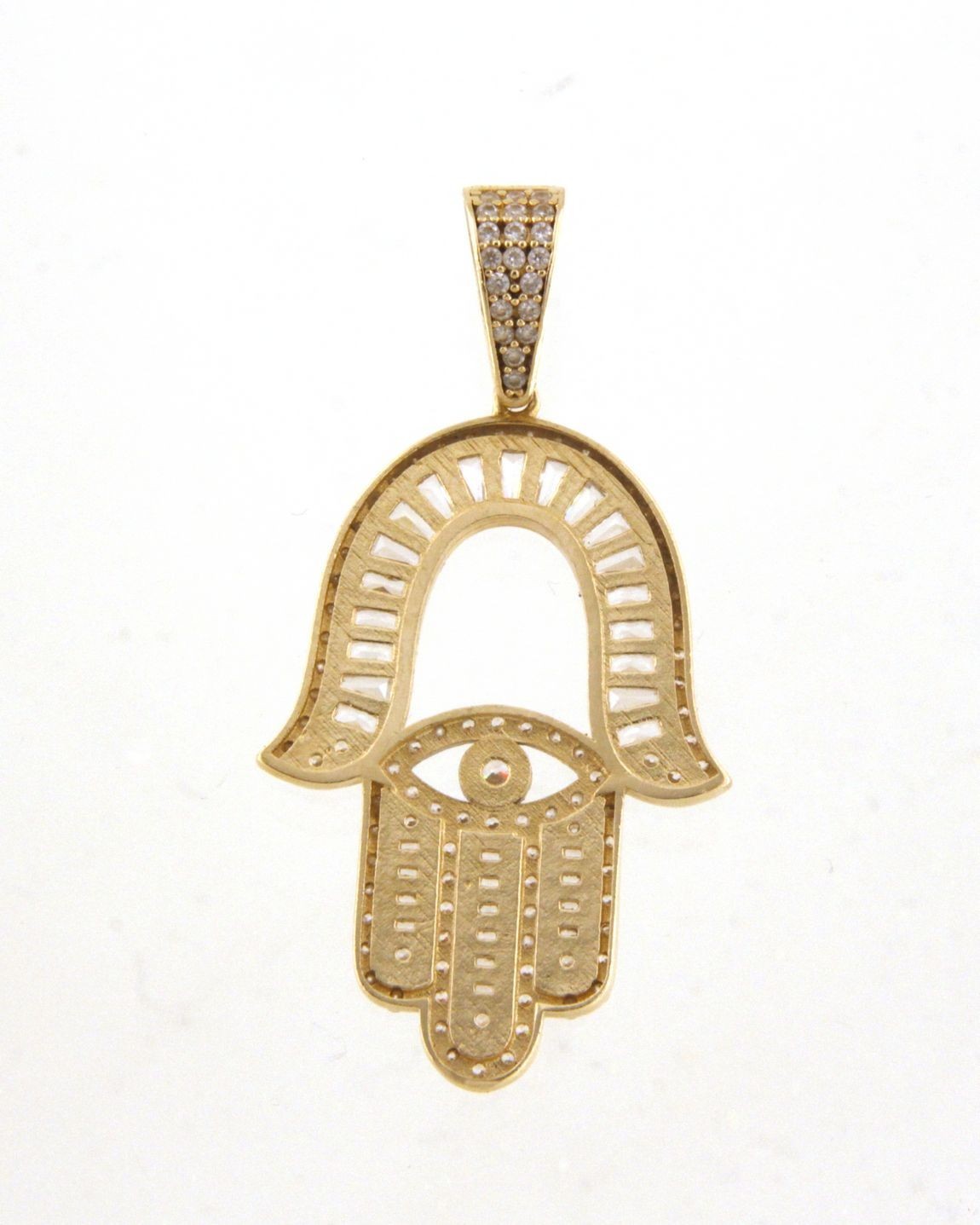 Type: CharmWeight: 3.3Karat: 14ktMetal: Yellow GoldGender: UnisexStyle: HamsaSize / Length: 1.75"Owner applied: 14k AWADStone 1 quantity: 1Stone 1 shape: RoundStone 1 color: ClearStone 1 weight (total): .10Stone 1 type: Cubic ZirconiaStone 2 Quantity: 117Stone 2 Shape: RoundStone 2 Color: ClearStone 2 Weight (Total): 1.20Stone 2 Type: Cubic ZirconiaCondition:Used