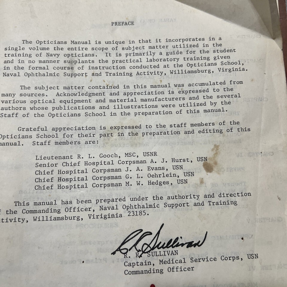 - United States Navy The Opticians Manual 1960s R.R. Sullivan Medical Services